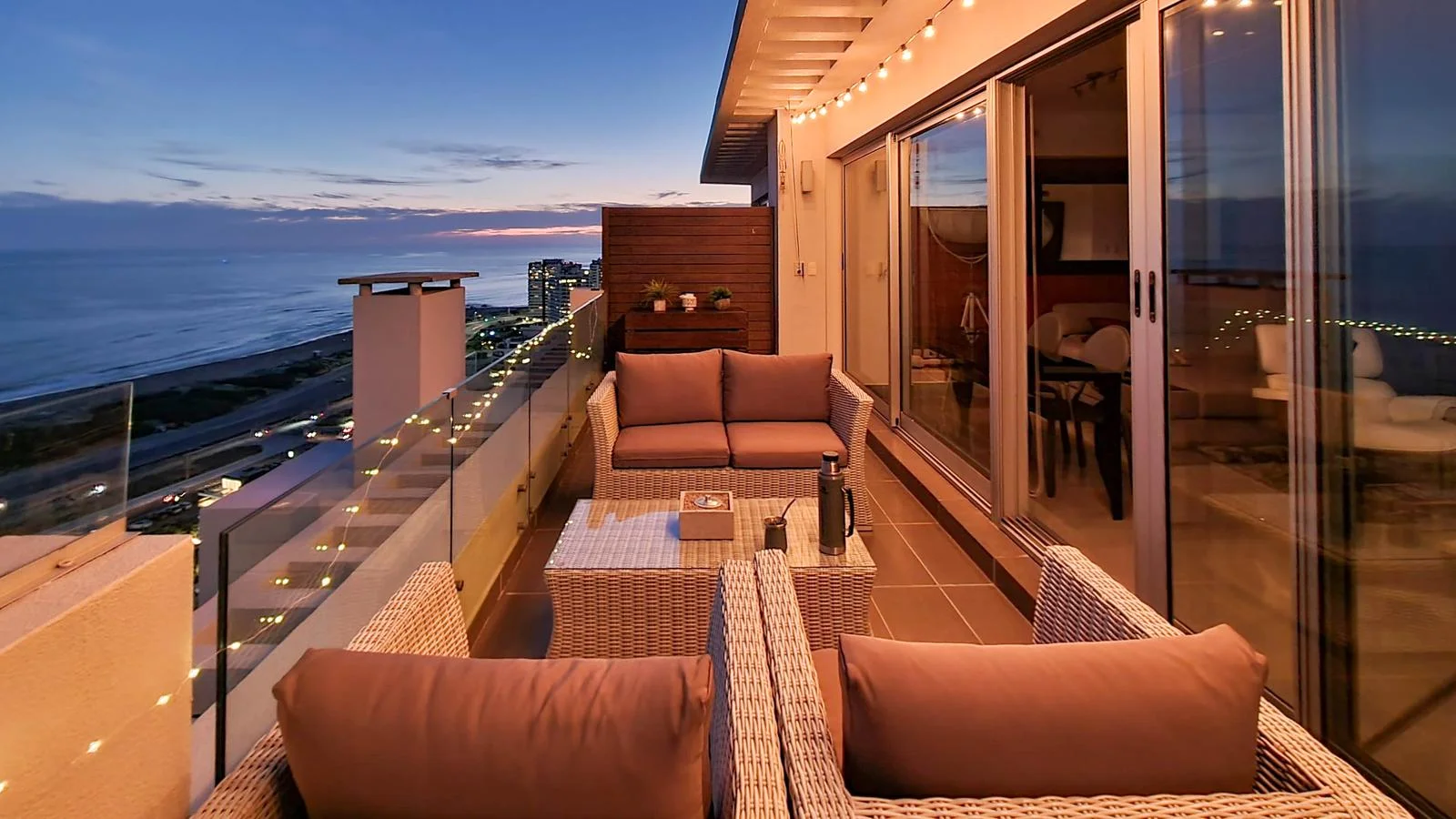 Una de las joyas de esta propiedad son sus amplias terrazas, que ofrecen vistas inigualables a la Playa Brava, creando el marco perfecto para disfrutar de atardeceres únicos y momentos inolvidables junto al mar.