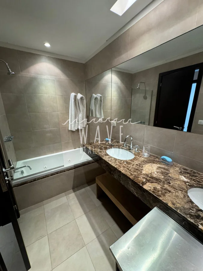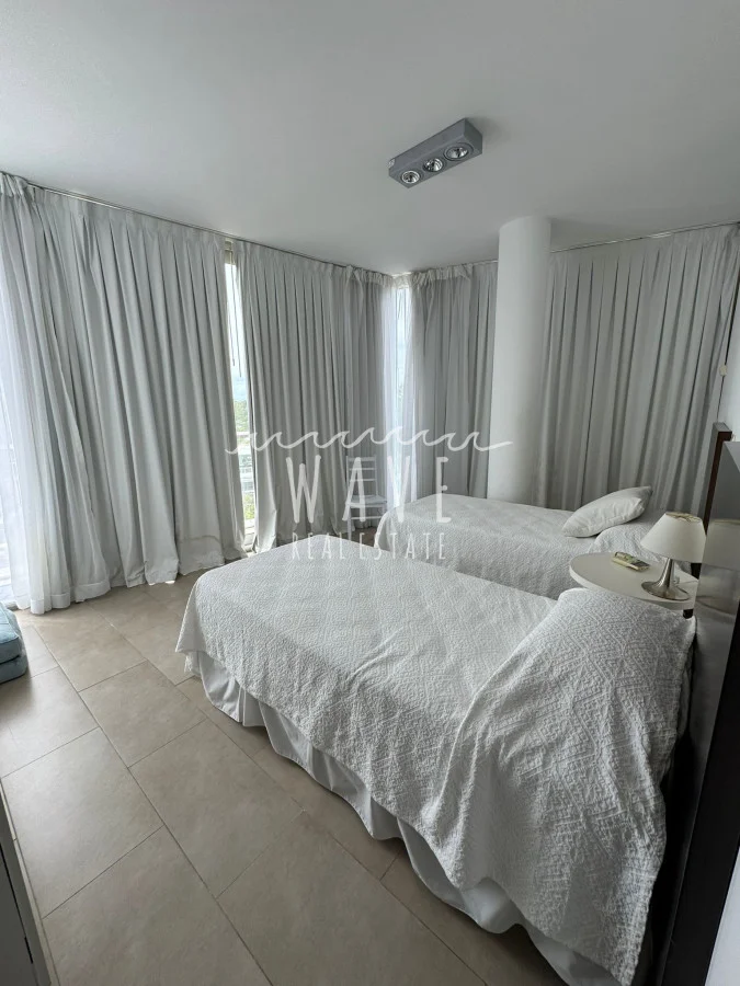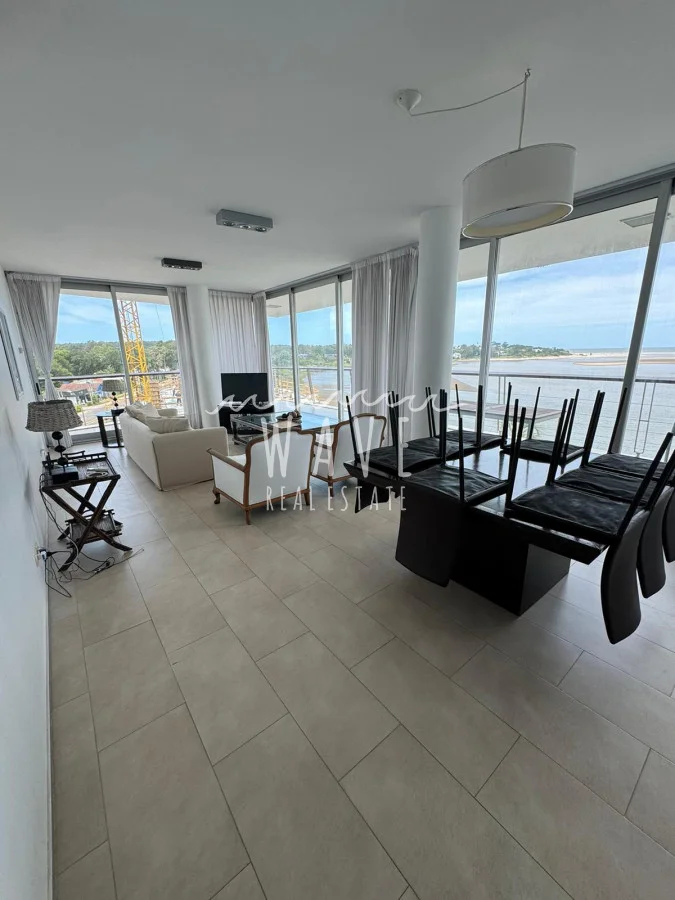 Moderno departamento , con la mejor vista al mar y desembocadura. 3 dormitorios, 2 banos ( 1 suite ), toilette, living comedor, cocina c/ terraza lavadero y terraza al frente. El apartamento cuenta con ropa blanca, heladera c/ freezer, microondas , lavavajillas, lavarropas , TV c/ cable. Todos los apartamentos del edificio cuentan con 2 garages + 1 estacionamientos de cortesia en planta baja. El edificio cuenta con servicio de mucamas todos los dias, piscina externa ( ninos y adultos ) , gimnasio, sauna, vestuarios.