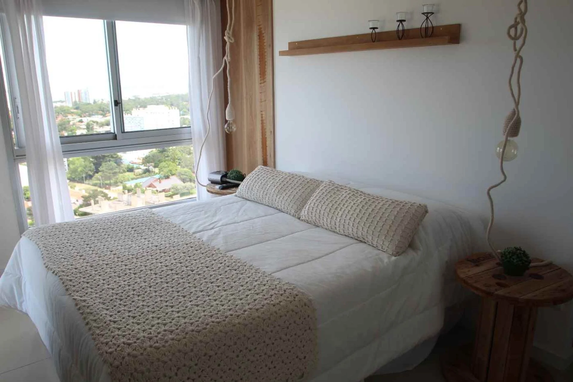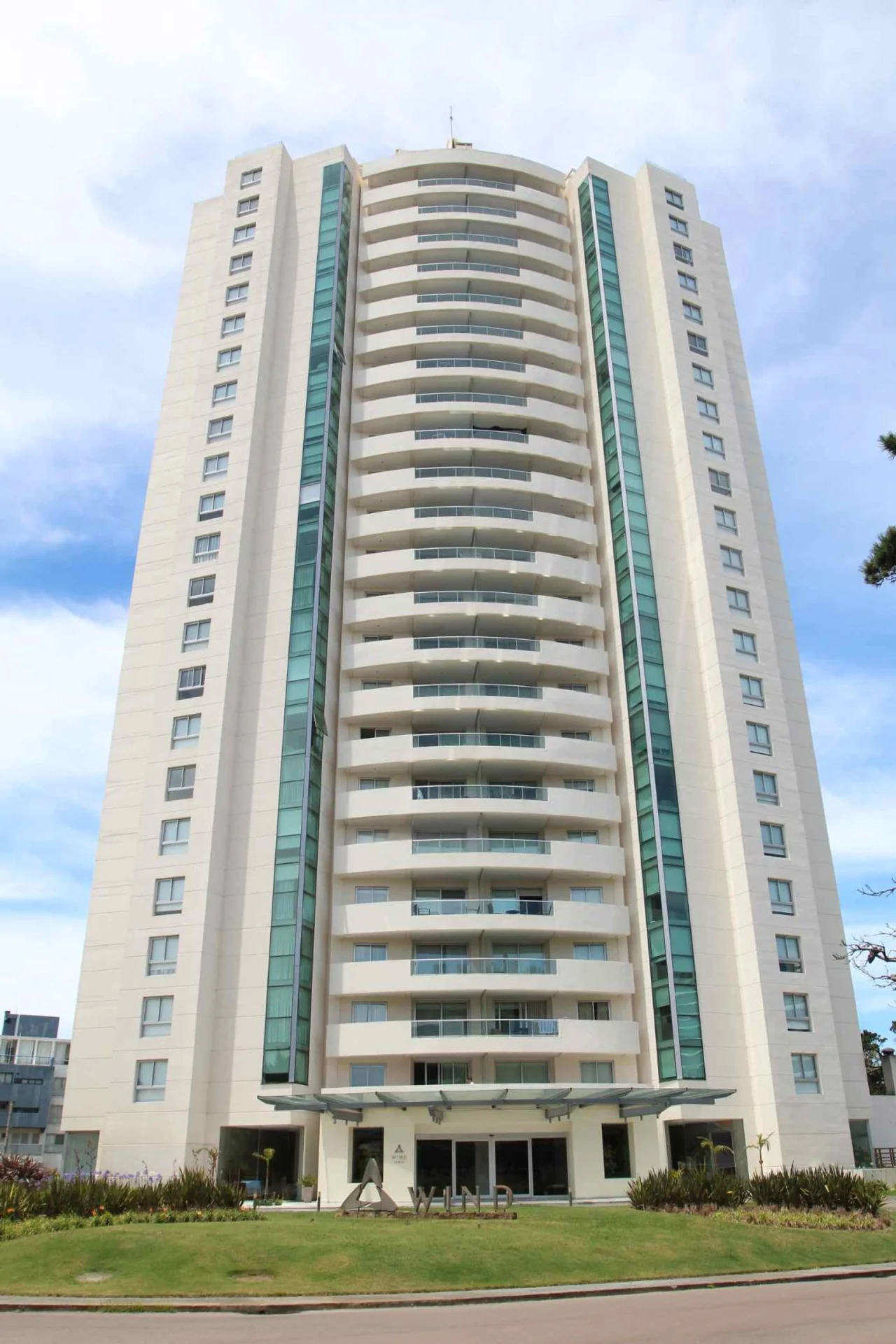 Apartamento en Ed. Wind Tower; a tan solo 150 mts del mar en parada 7 de Playa Brava; 2 dormitorios; 2 baños; 1 suites; garaje; terraza con vista al mar y Punta del Este. Full equipado; Aire Acondicionado en todos los ambientes.