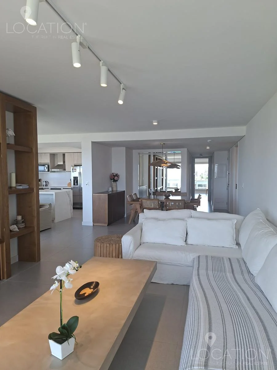 La unidad cuenta con 3 amplios dormitorios en suite, cada uno con excelente iluminación natural y detalles de categoría. La cocina americana integrada se conecta armónicamente con el living comedor, un espacio luminoso y elegante que se abre hacia grandes ventanales con una vista franca al océano.