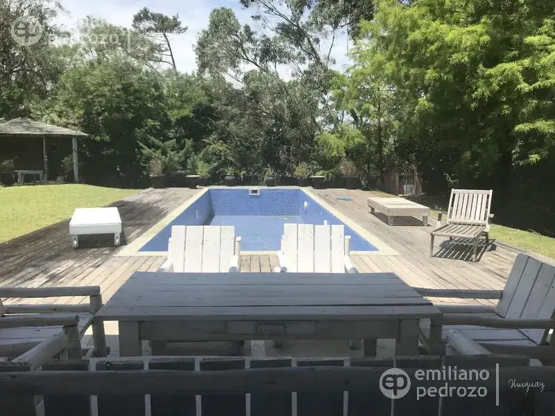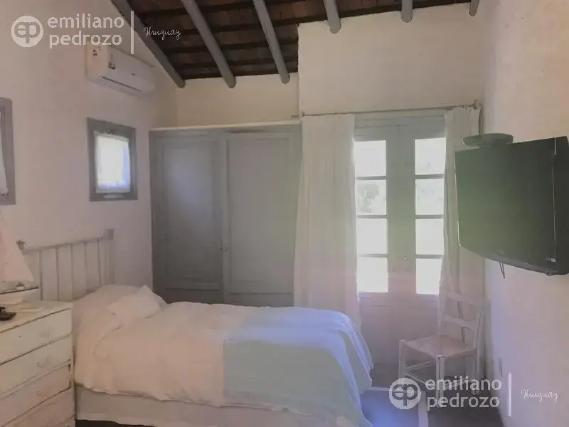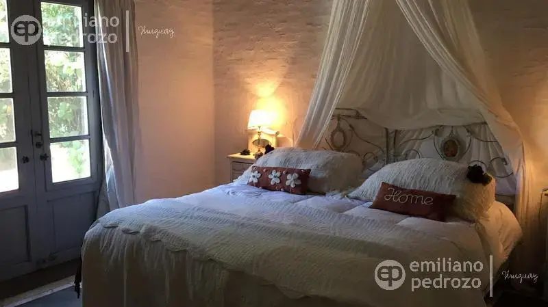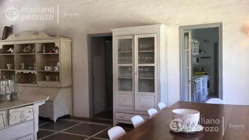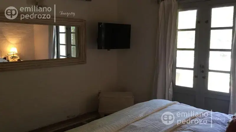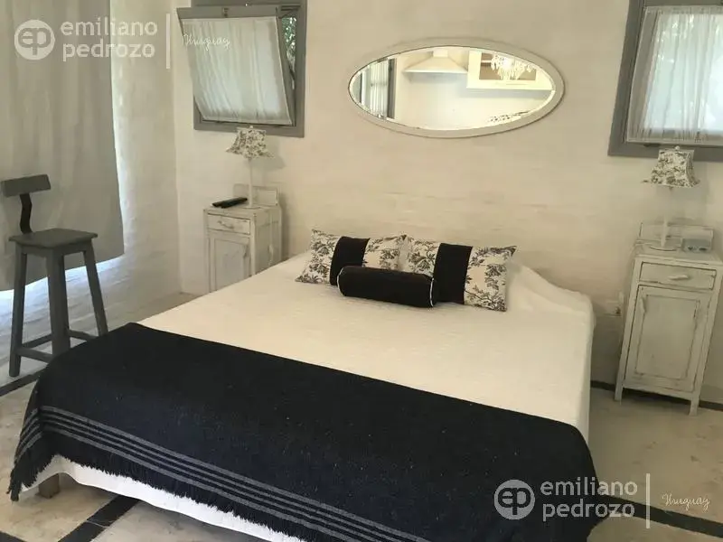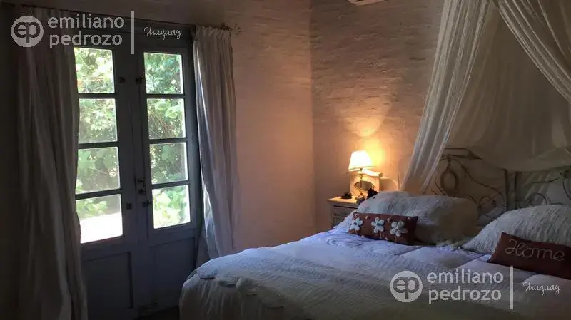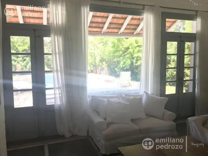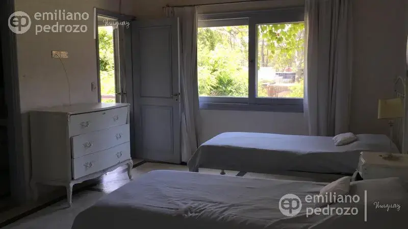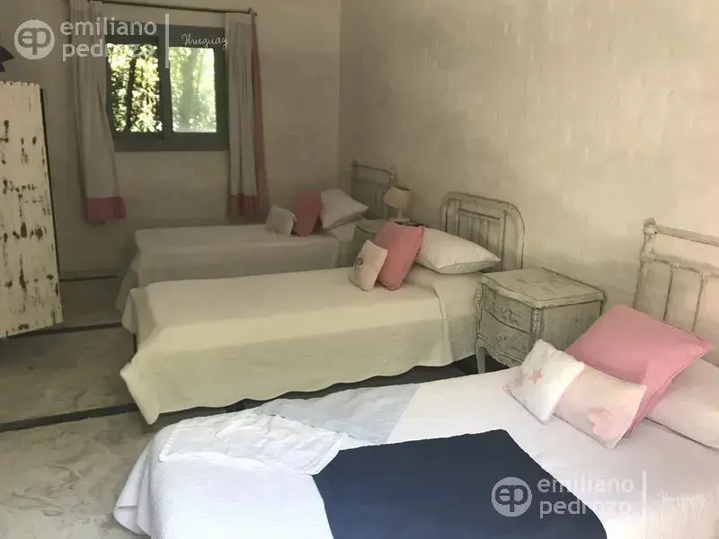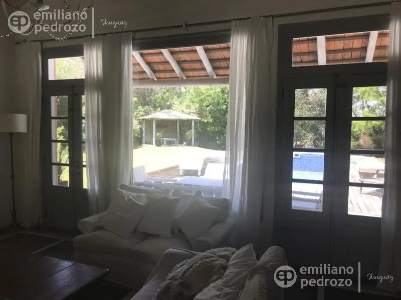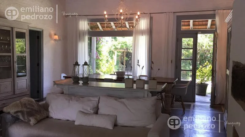 Hermosa propiedad en La Barra, de estilo Mediterráneo. La casa principal cuenta con gran living-comedor con estufa a leña, amplios ventanales que integran las áreas exteriores. Cocina definida, master suite, 2 dormitorios secundarios con baño completo y medio dormitorio adicional. Independiente de la casa, gran zona de huéspedes formada por: loft con cocina y baño, 3 dormitorios con 3 plazas cada uno y otros 2 baños completos. Dependencia de servicio con baño. En total hay capacidad para 20 huéspedes. Gran barbacoa y jardín con piscina.