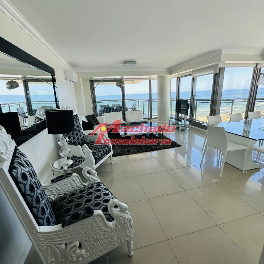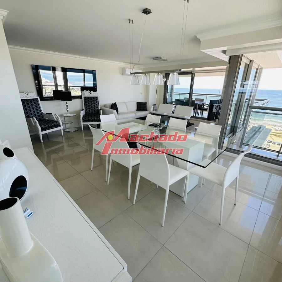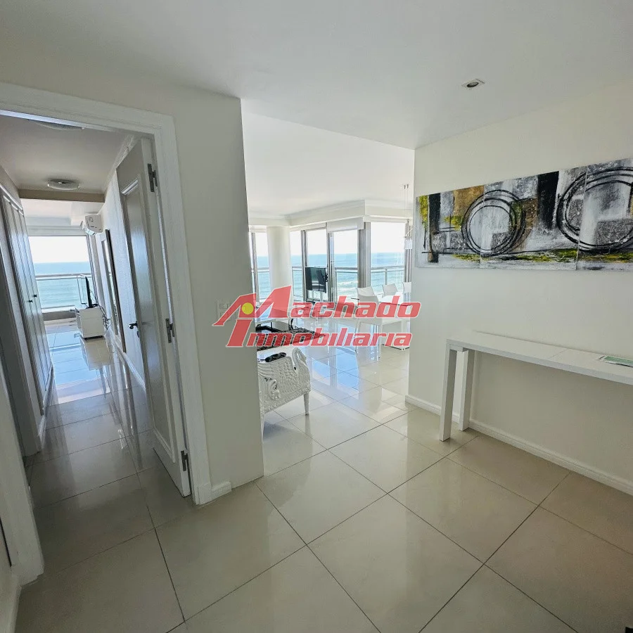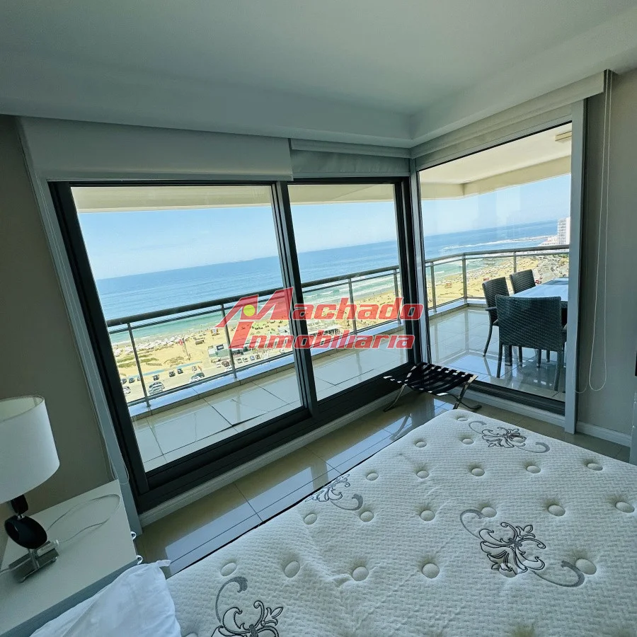 Hermoso apartamento esquinero, orientación sureste. Cuenta con 3 dormitorios en suite: - Dormitorio principal al frente, vista a la brava y baño con yacuzzi. - Dormitorio 2 y 3, ambos en suite, contra frente, orientación noroeste con balcón y vista a la piscina del complejo. Cocina amplia con lavadero+ dependencia de servicio con baño. Living comedor con terraza al frente y vista al mar directa, parda 2 de la playa brava. Consúltenos y agende su visita! Referencia Interna : Tera-9170
