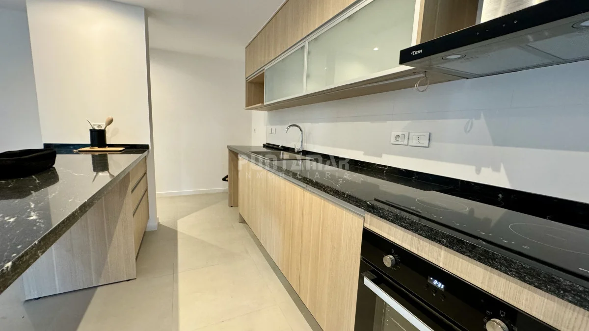 Hermoso apartamento, a estrenar, a solo 6 cuadras de la Posta del Cangrejo. Cuenta con 3 dormitorios, 2 baños, Cocina Integrada, Living comedor que fluyen al amplio jardín cercado, con parrillero techado.