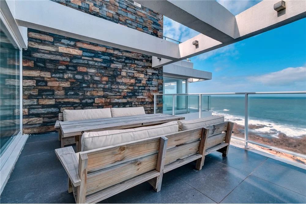 Exclusivo apartamento en alquiler temporario, frente al mar en Punta del Este. Frente a Playa de los Ingleses en la Playa Brava, de la Península de Punta del Este, encontramos este lindo departamento nuevo con 3 dormitorios, 2 baños uno de ellos en suite, toilette, cocina y amplio living comedor con salida a la amplia terraza frente al mar con una vista increíble a la Brava e Isla de Lobos. El edificio cuenta con servicio de mucama y playa, recepción 24 horas, mantenimiento , piscina, Gym, Sauna, etc...