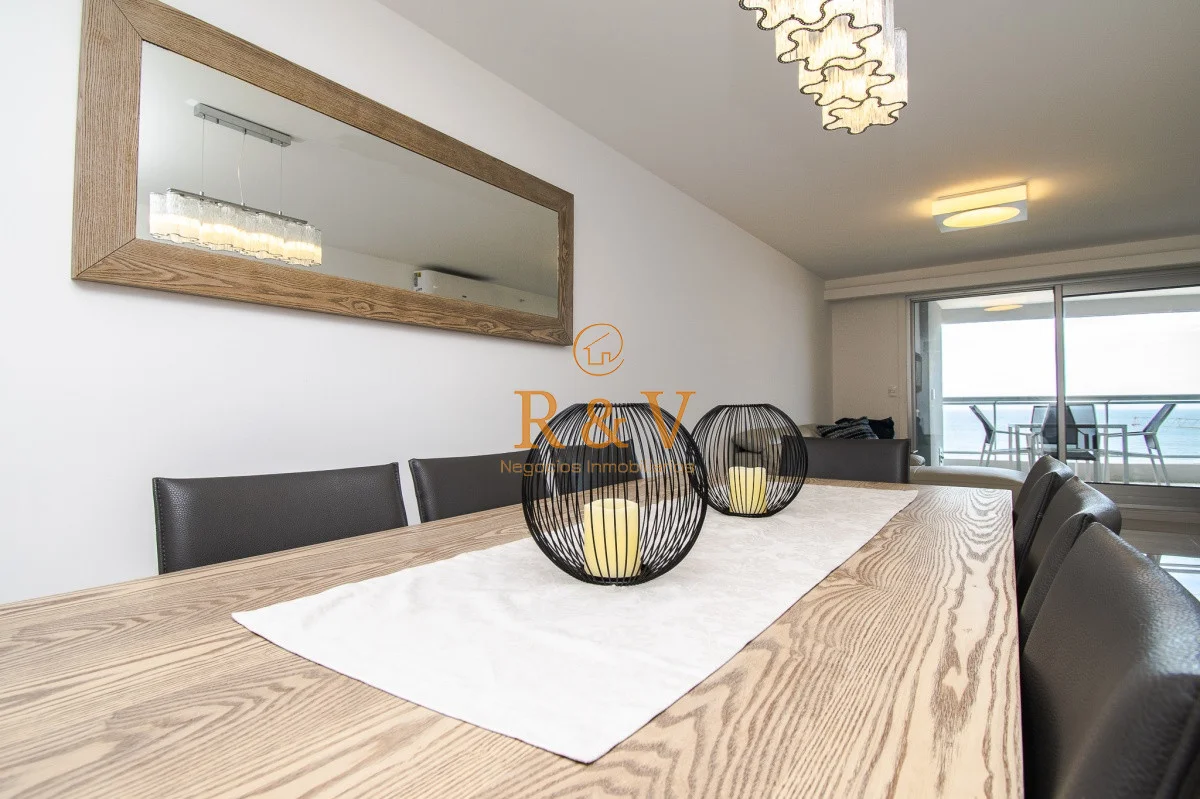 En entrada principal nos encontramos con un amplio y moderno living comedor con salida a terraza mirando el mar y parrillero.