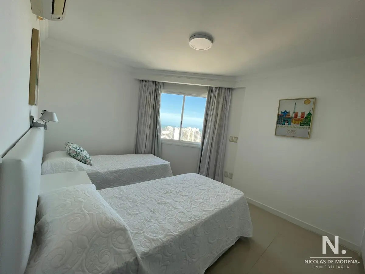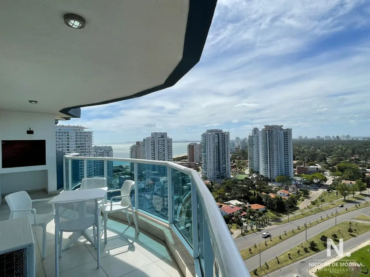 Apartamento de 3 dormitorios situado a escasos metros de Playa Mansa. Este apartamento se encuentra en un edificio con una amplia gama de comodidades excepcionales: desde servicio de playa hasta canchas de tenis, gimnasio y piscinas climatizadas, tanto al aire libre como cubiertas. Con 3 dormitorios, 3 baños y una terraza que incluye una parrilla propia,
