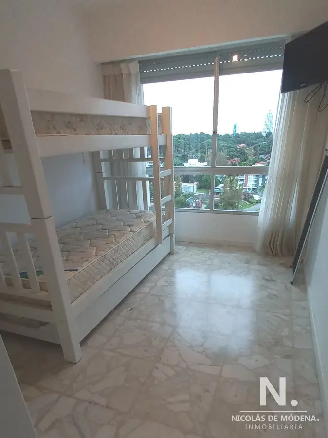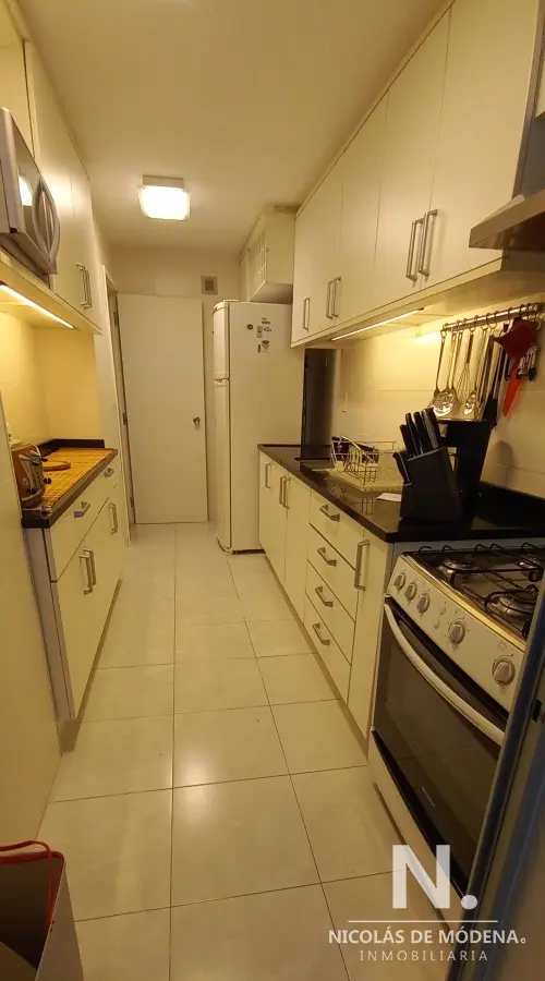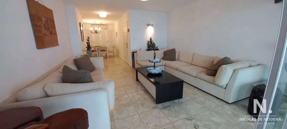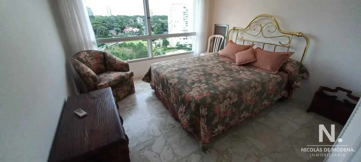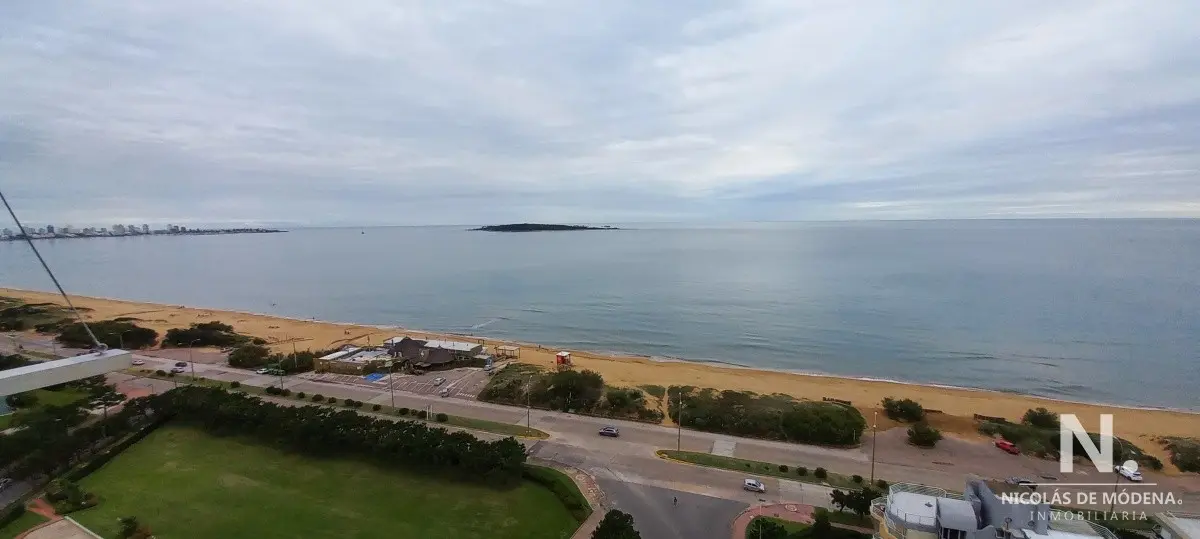 La unidad ofrece una sobresaliente panorámica al mar, la Península y Punta Ballena, constando de 3 dormitorios con 2 baños (1 en suite). Presenta un generoso salón-comedor con terraza cerrada, cocina completa con lavadero, y estacionamiento con área de almacenaje en el garaje. Tanto los baños como la cocina han sido objeto de reciente renovación. Asimismo, dispone de sistemas de aire acondicionado en el salón y en cada dormitorio. Con una superficie total de 97 m2, una terraza de 7 m2 y 3 m2 destinados al lavadero, brinda un área privativa de 107 m2.
