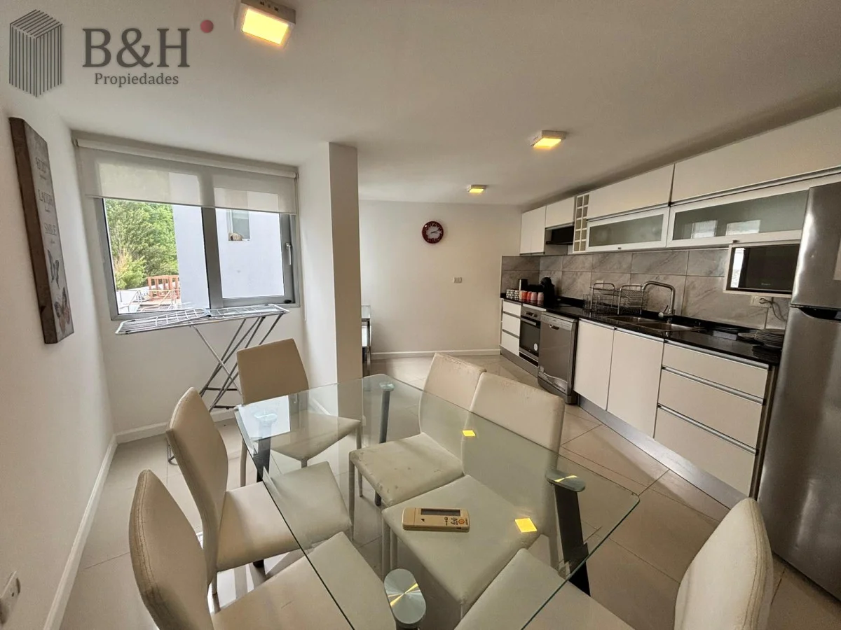 La cocina, definida y funcional, se integra perfectamente con el amplio living-comedor, creando un ambiente perfecto para compartir y relajarse.