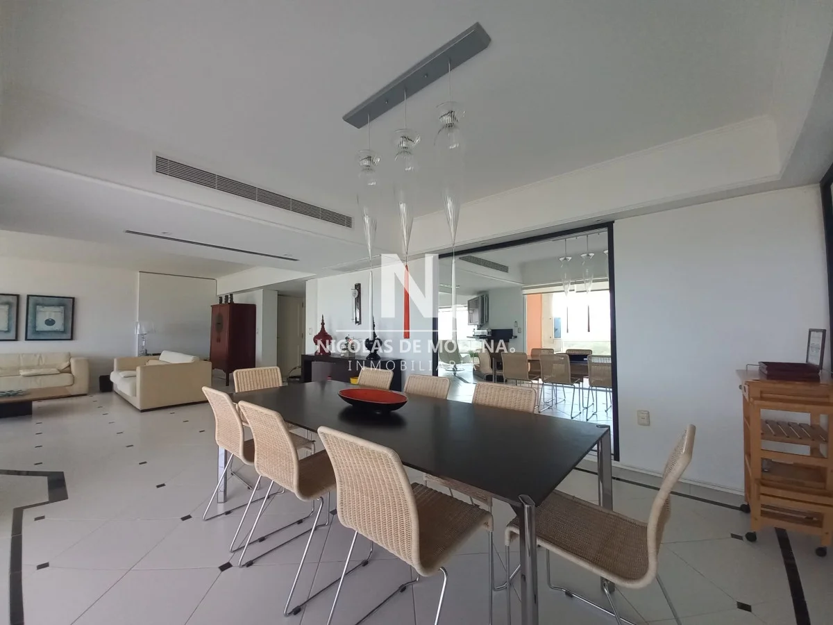 Departamento de amplios y luminosos ambientes, frente al mar. 4 dormitorios en suite + toilette. Living-comedor con estufa a leña y acceso a amplia terraza al frente con parrillero. Cocina definida con desayunador. Dependencia de servicio con baño. Garaje para 2 autos. Consulte a nuestros asesores y conozca esta hermosa propiedad. Edificio con lindos servicios Referencia Interna : Tera-16686