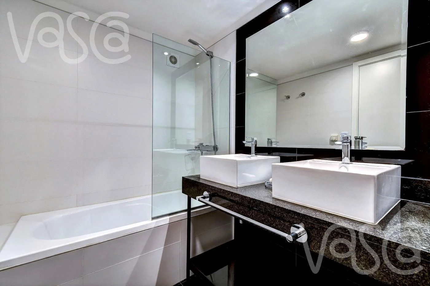 El apartamento cuenta con aire acondicionado en todos los ambientes así como losa radiante eléctrica individual, y cochera propia en el primer subsuelo.