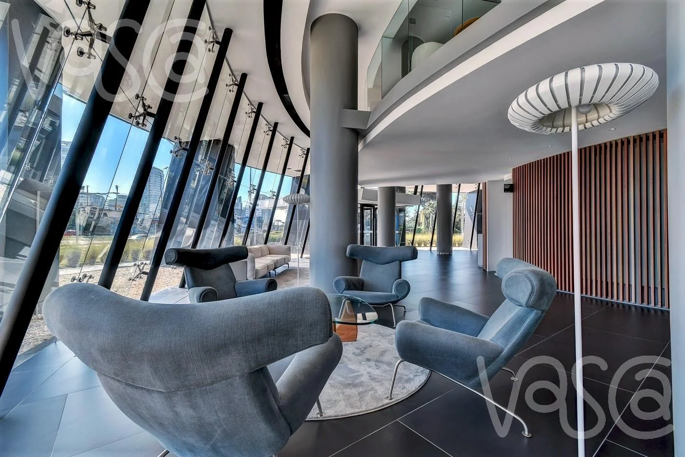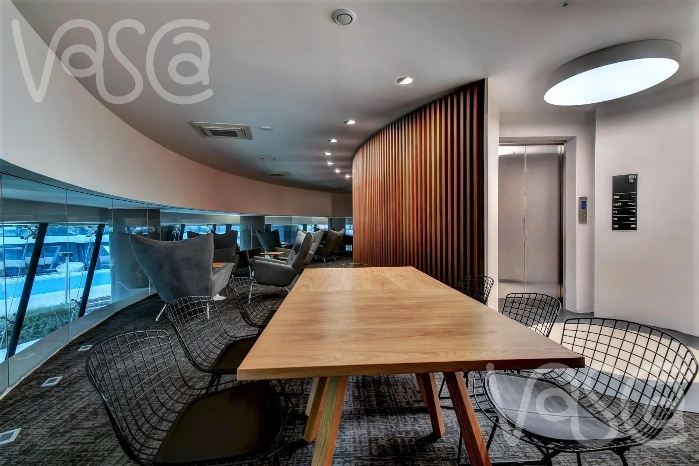 Múltiples salas de reuniones rodean el núcleo, en el entresuelo. El diseño de la última planta incluye salones para actividades sociales y un solarium exterior de 360º. En la azotea del edificio, una plataforma permite funcionar como helipuerto en caso de ser necesario.