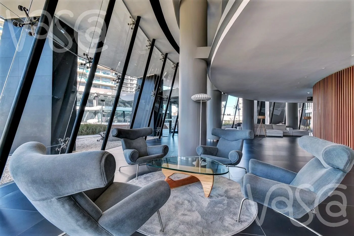 A pasos de la Península y cercano a las dos principales playas, Mansa y Brava, la torre de 23 pisos hace esquina con una planta circular de 73 metros de altura. Dispone de dos sótanos para aparcamiento de vehículos. El vestíbulo de recepción circular de doble altura, conecta con dos edificios independientes de 2 plantas donde se ubican las principales amenidades, gimnasio, spa y piscina cubierta. Ademas dispone de piscina exterior y area de juegos entre otros.