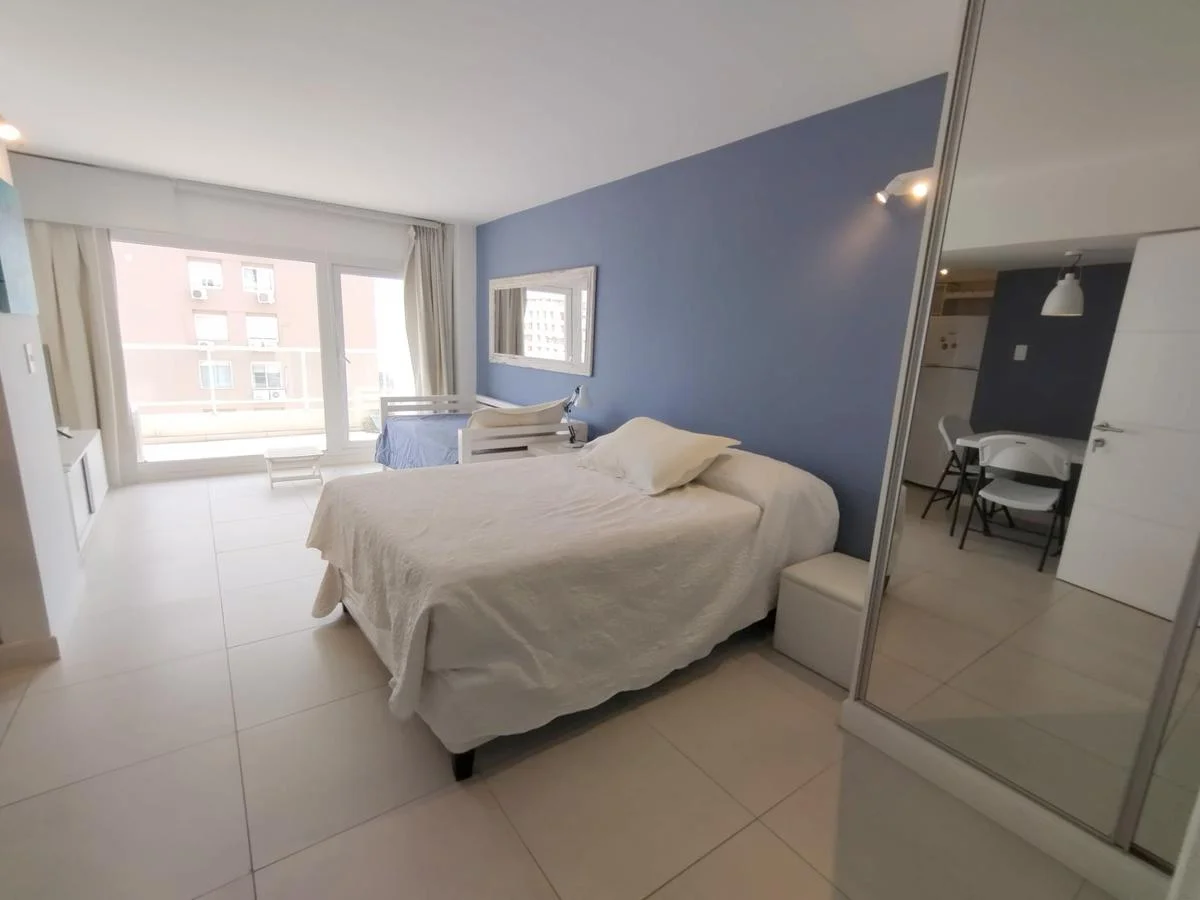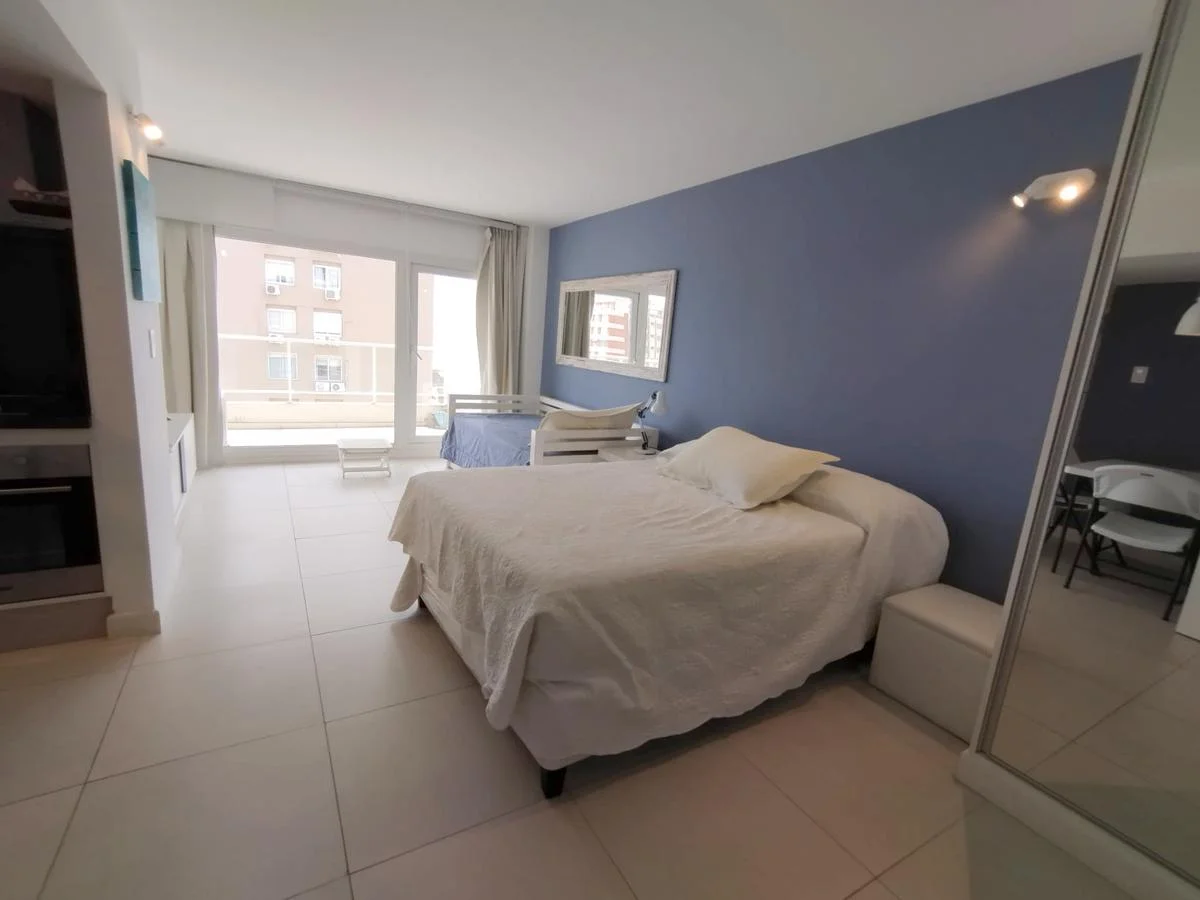 Amplio apartamento estilo monoambiente, 1 dormitorio, cocina completa, living comedor, balcon aterrazado y garaje.