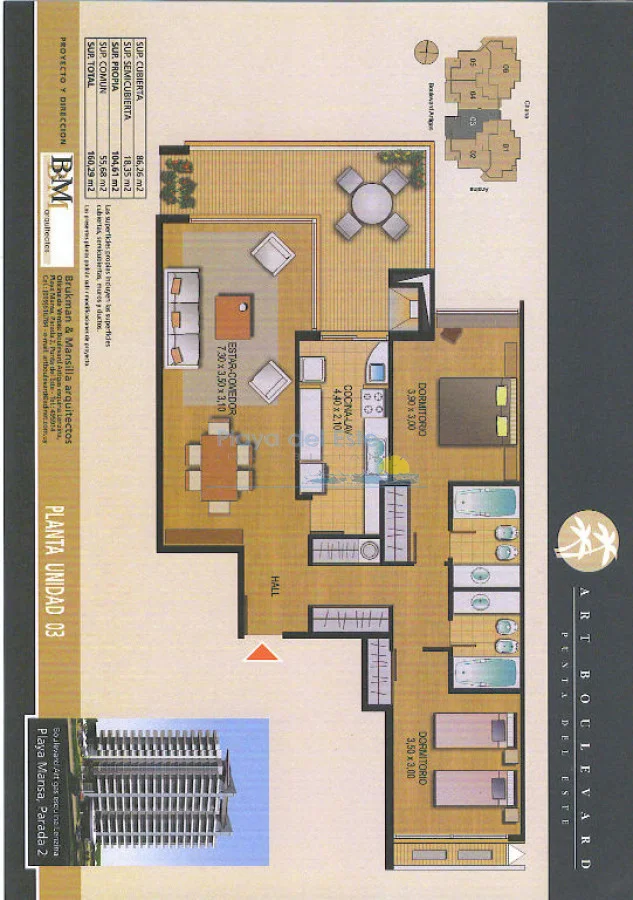 Apartamento de 2 dormitorios en el moderno Edificio Art Boulevard, ubicado en una zona residencial muy valorada de Punta del Este, a pocos minutos de la Playa Brava, la Playa Mansa y del centro de la ciudad.