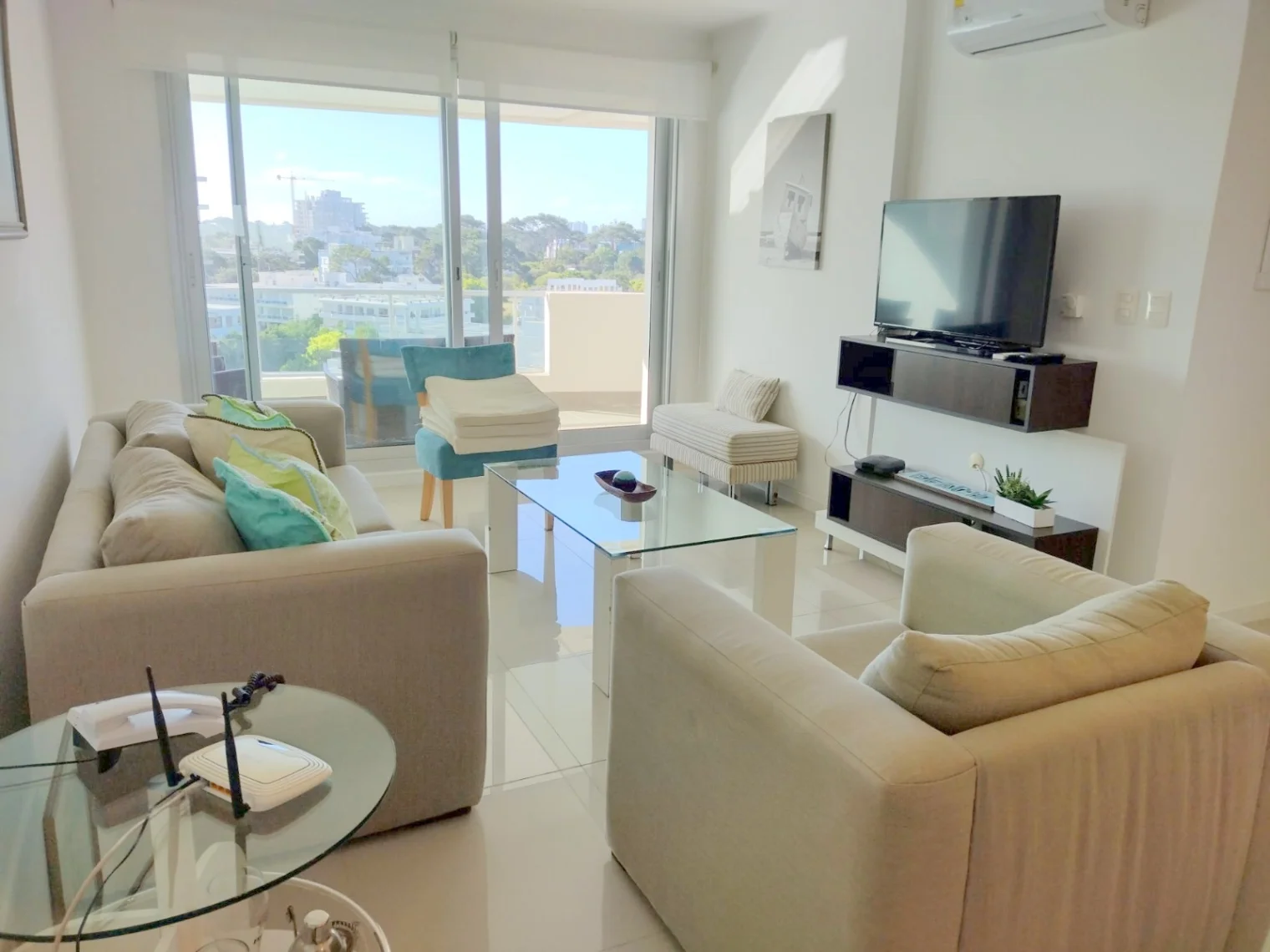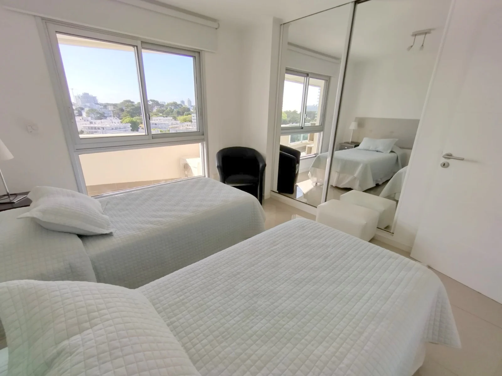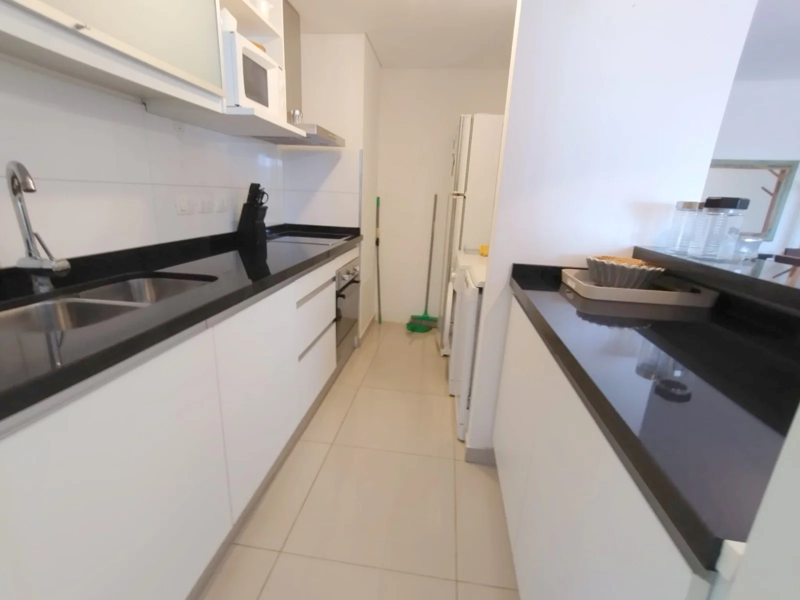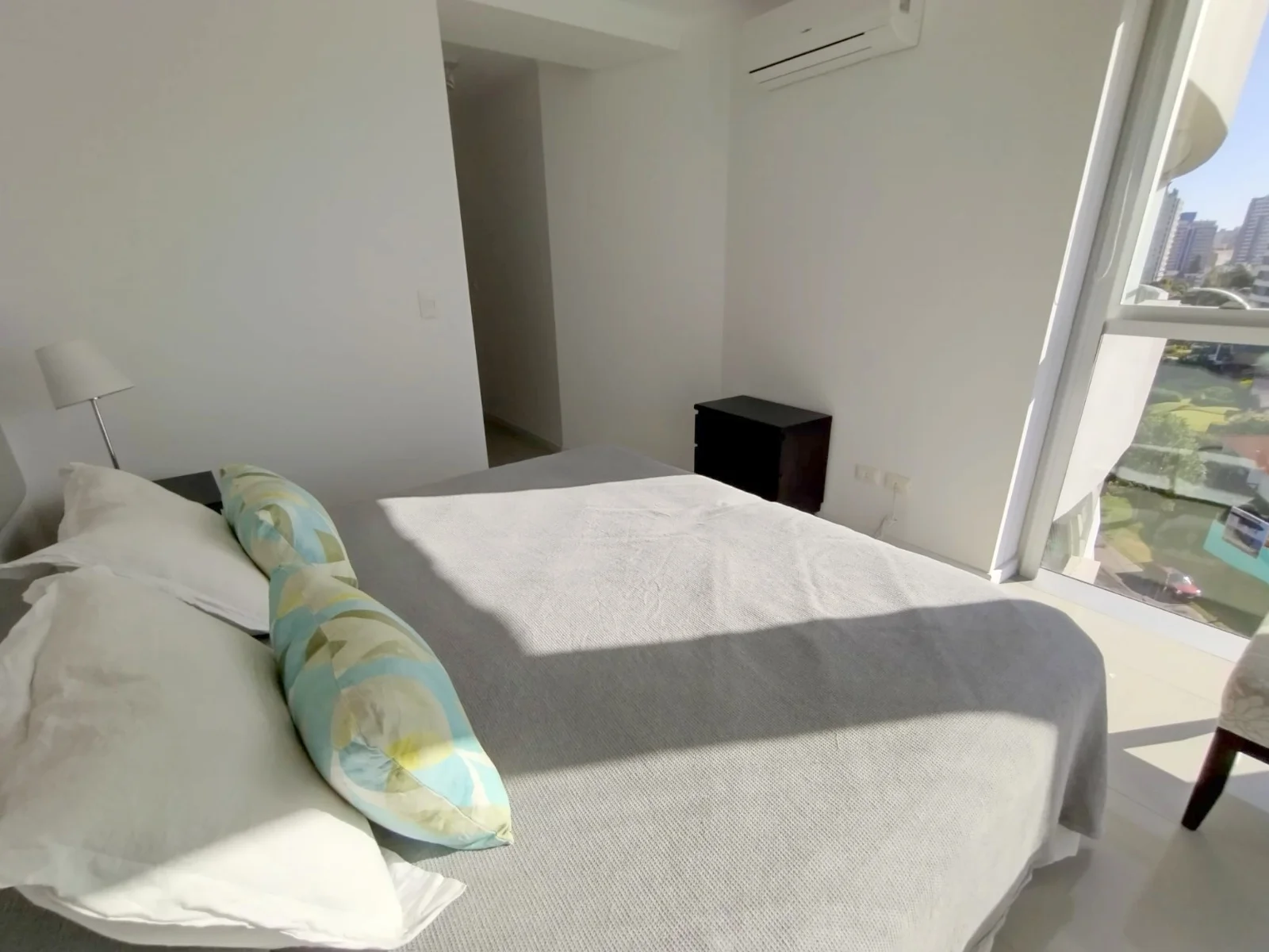 El apartamento cuenta con 3 ambientes distribuidos en 2 dormitorios, 2 baños, una cocina completamente equipada y un living comedor que se extiende hacia un balcón privado. Entre sus características destacan WiFi, placards, lavadero, aire acondicionado y la posibilidad de tener teléfono e internet. Además, admite mascotas, lo que lo hace perfecto para familias con animales.