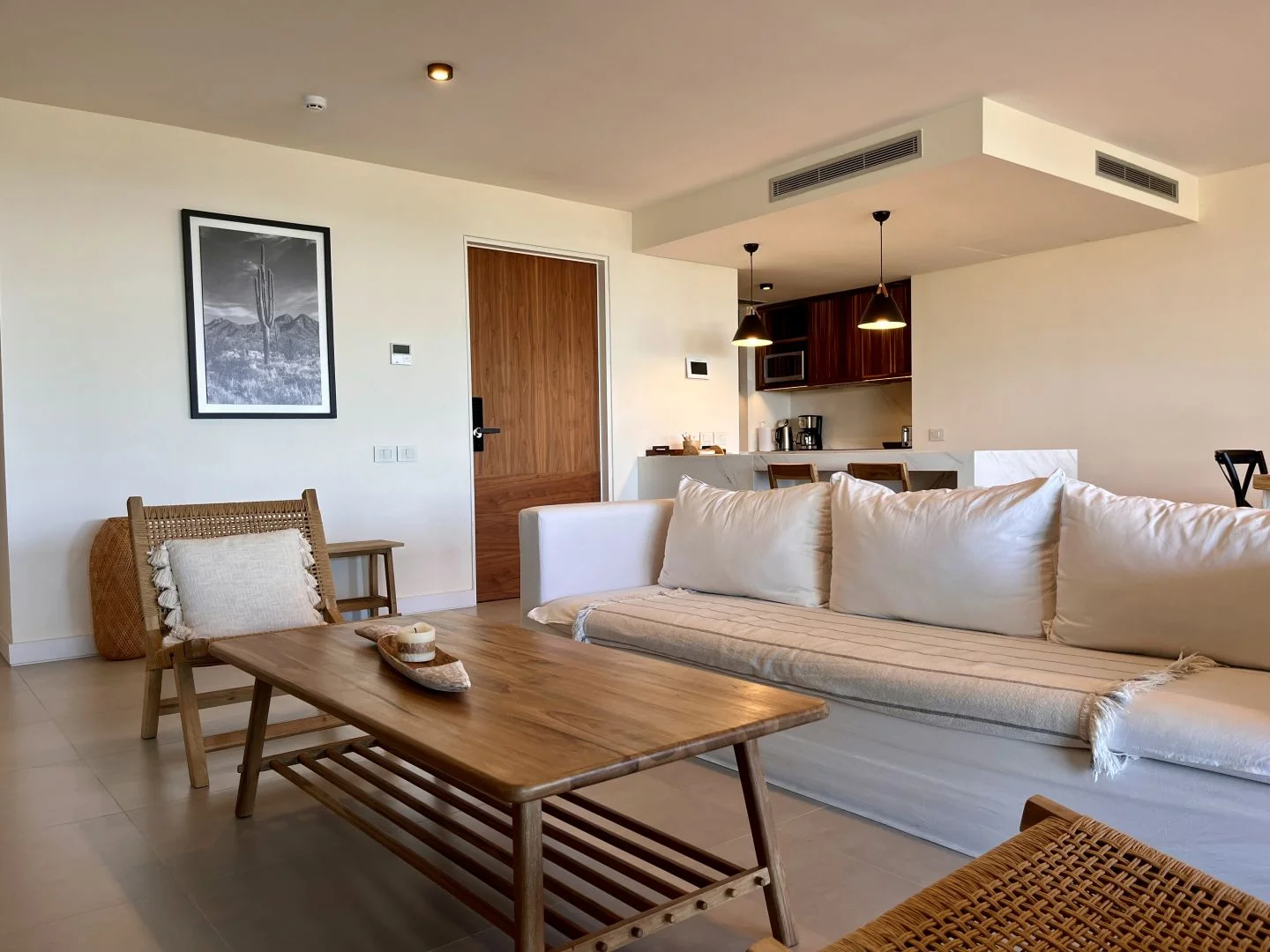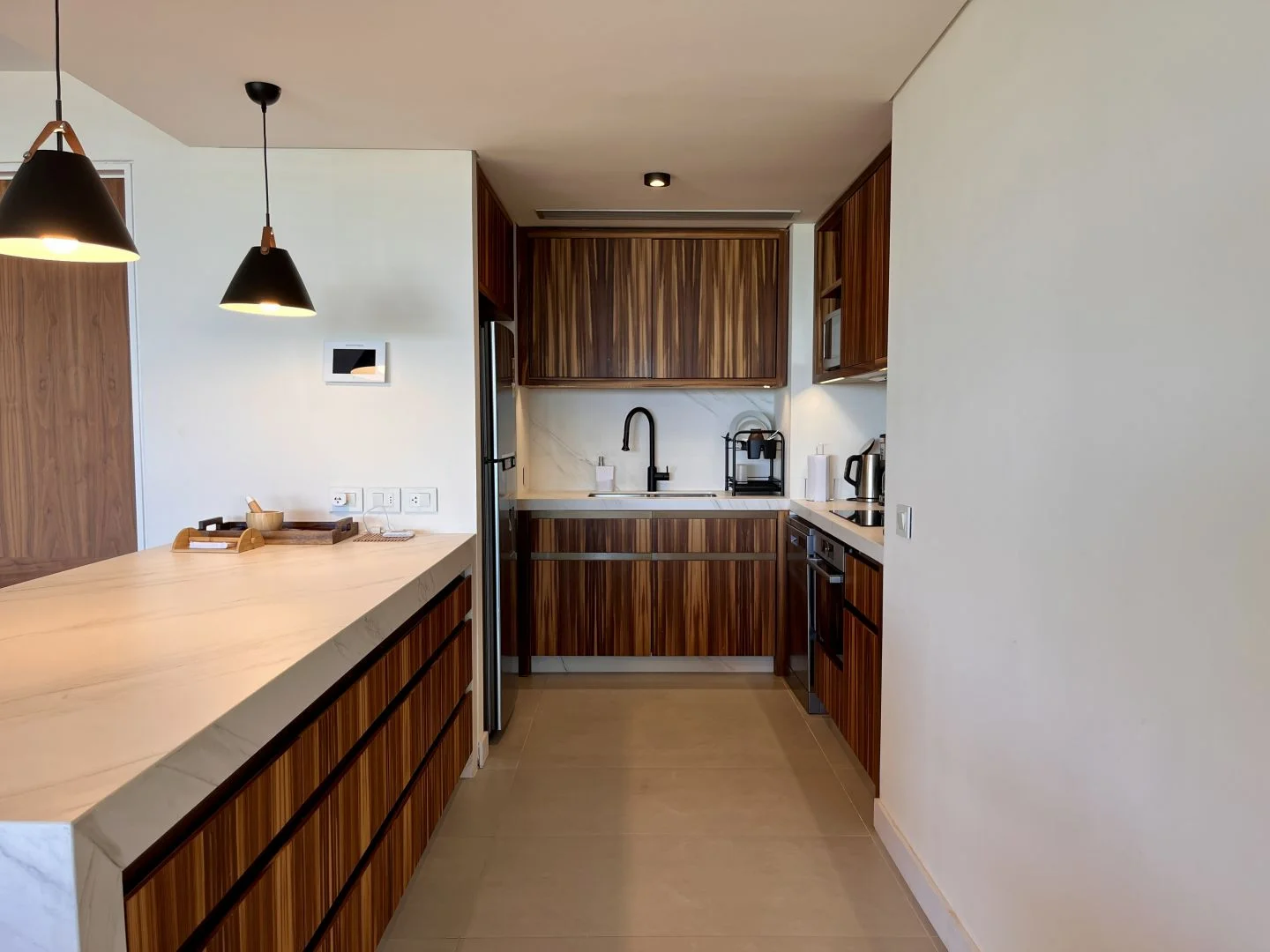 La propiedad cuenta con 3 dormitorios, cada uno con su propio baño en suite, brindando privacidad y comodidad para todos los huéspedes. Además, todo el apartamento tiene acceso directo a una enorme terraza, lo que permite disfrutar de vistas impresionantes del océano y del entorno natural circundante.
