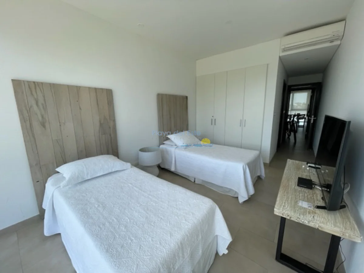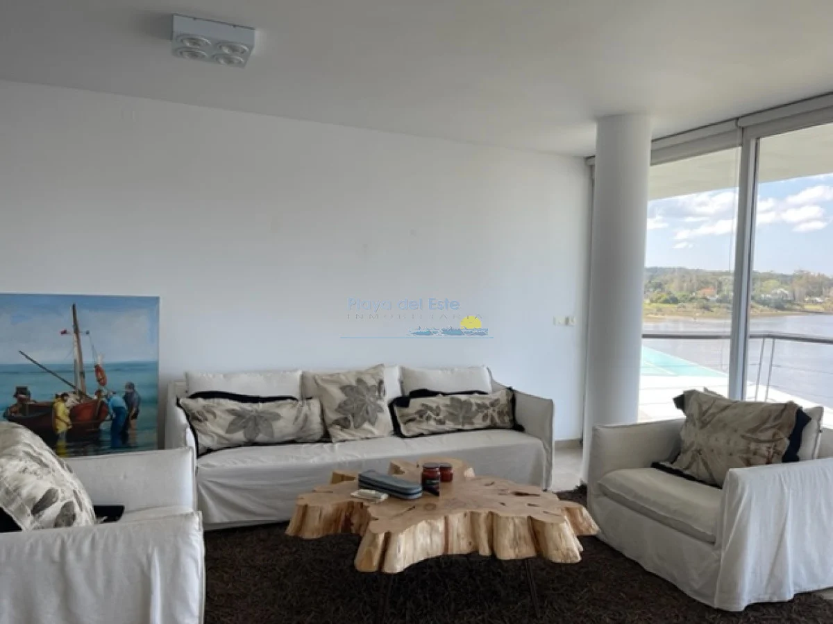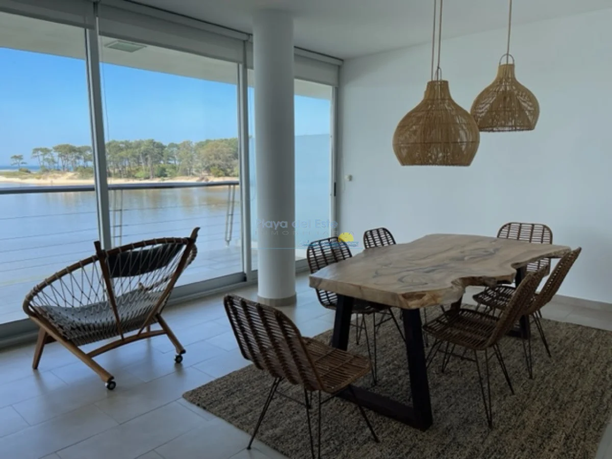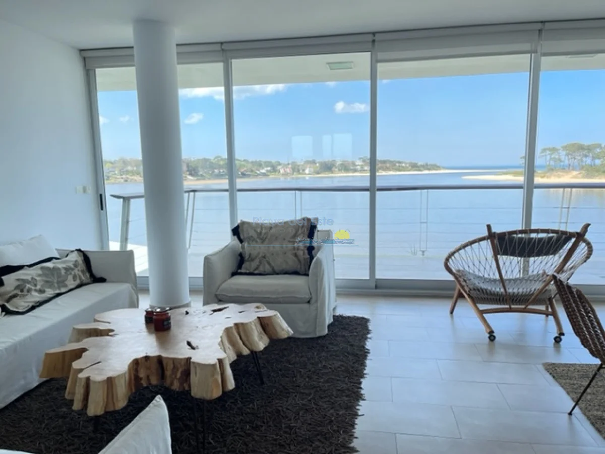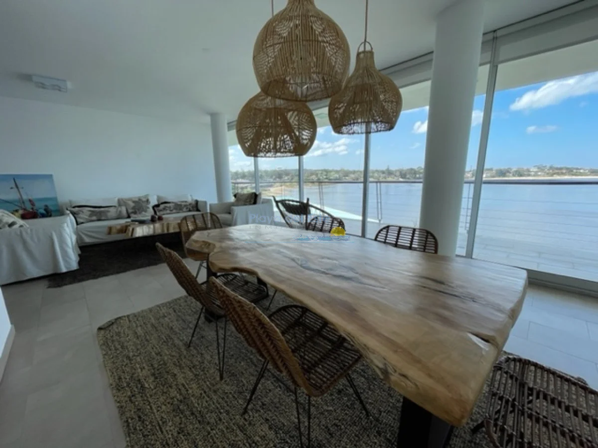Apartamento con vistas espectaculares al arroyo y desembocadura al océano. 3 suite, toilette, garaje, aire acondicionado, sabanas y toallas. Piscina, gimnasio, vigilancia 24 horas, servicio de mucama, servicio de playa en la desembocadra.