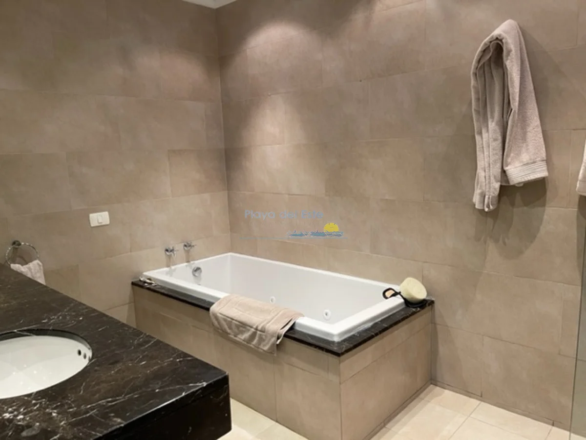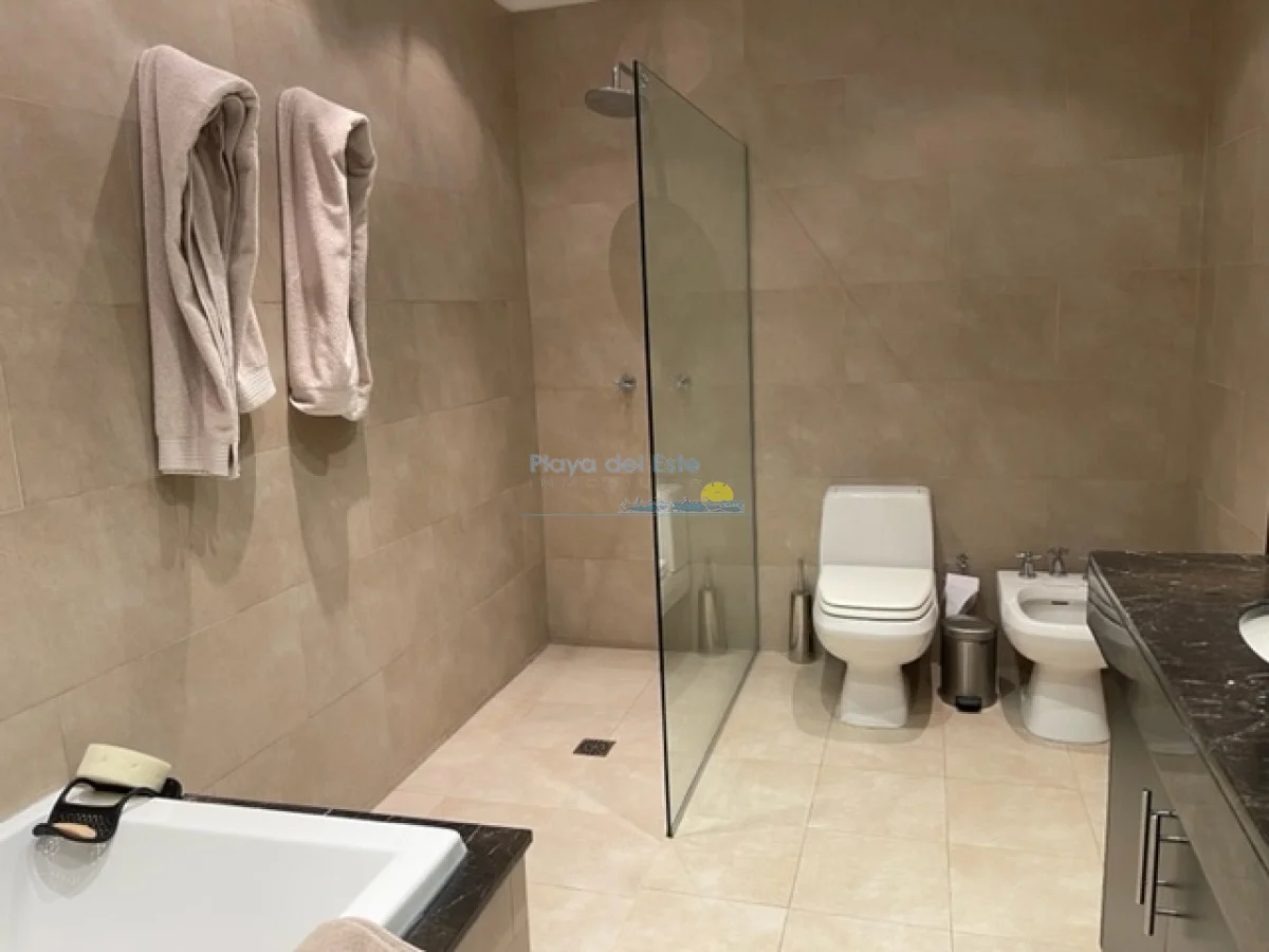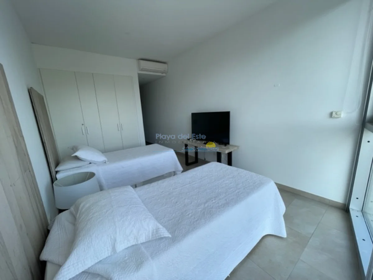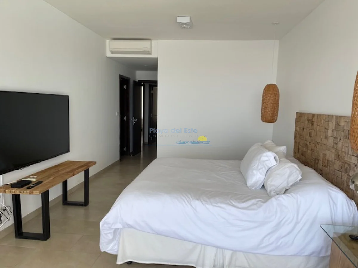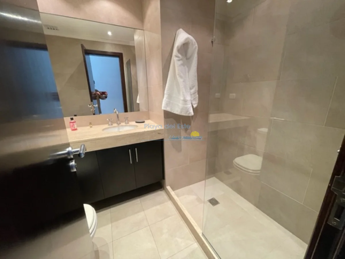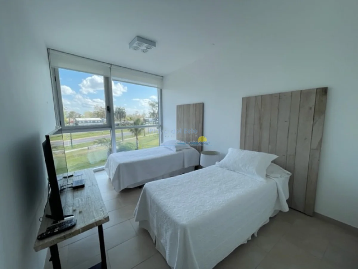 Apartamento con vistas espectaculares al arroyo y desembocadura al océano. 3 suite, toilette, garaje, aire acondicionado, sabanas y toallas. Piscina, gimnasio, vigilancia 24 horas, servicio de mucama, servicio de playa en la desembocadra.