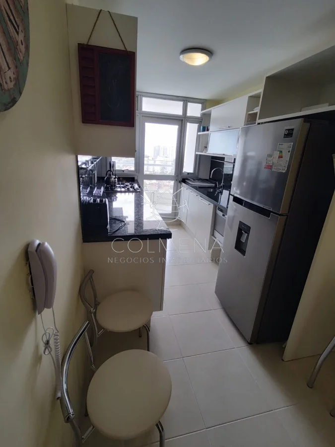 Espacioso living-comedor integrado al balcón terraza con vista panorámica.