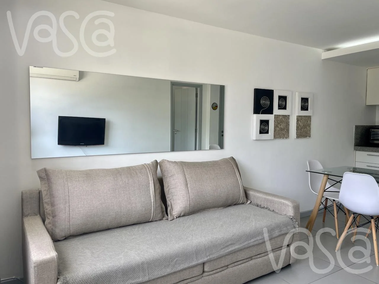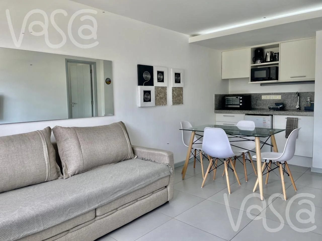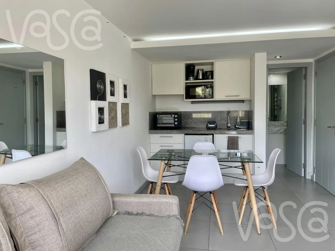 Ubicado a solo dos cuadras de Playa Brava y muy próximo a las tiendas, se encuentra este encantador apartamento, totalmente reciclado y equipado a nuevo.Cuenta con un luminoso living —con sofá cama para dos personas—, comedor y cocina integrada.
