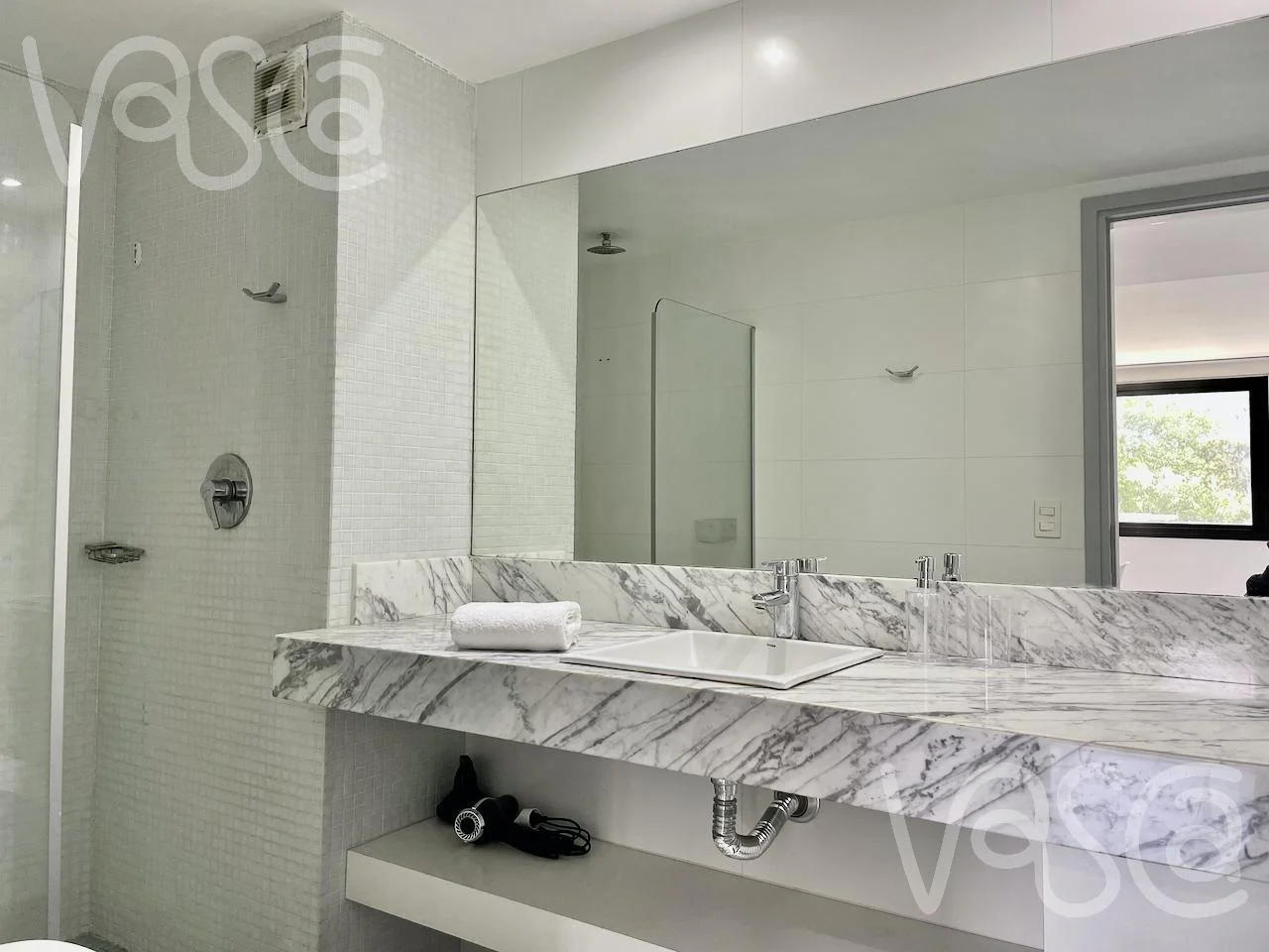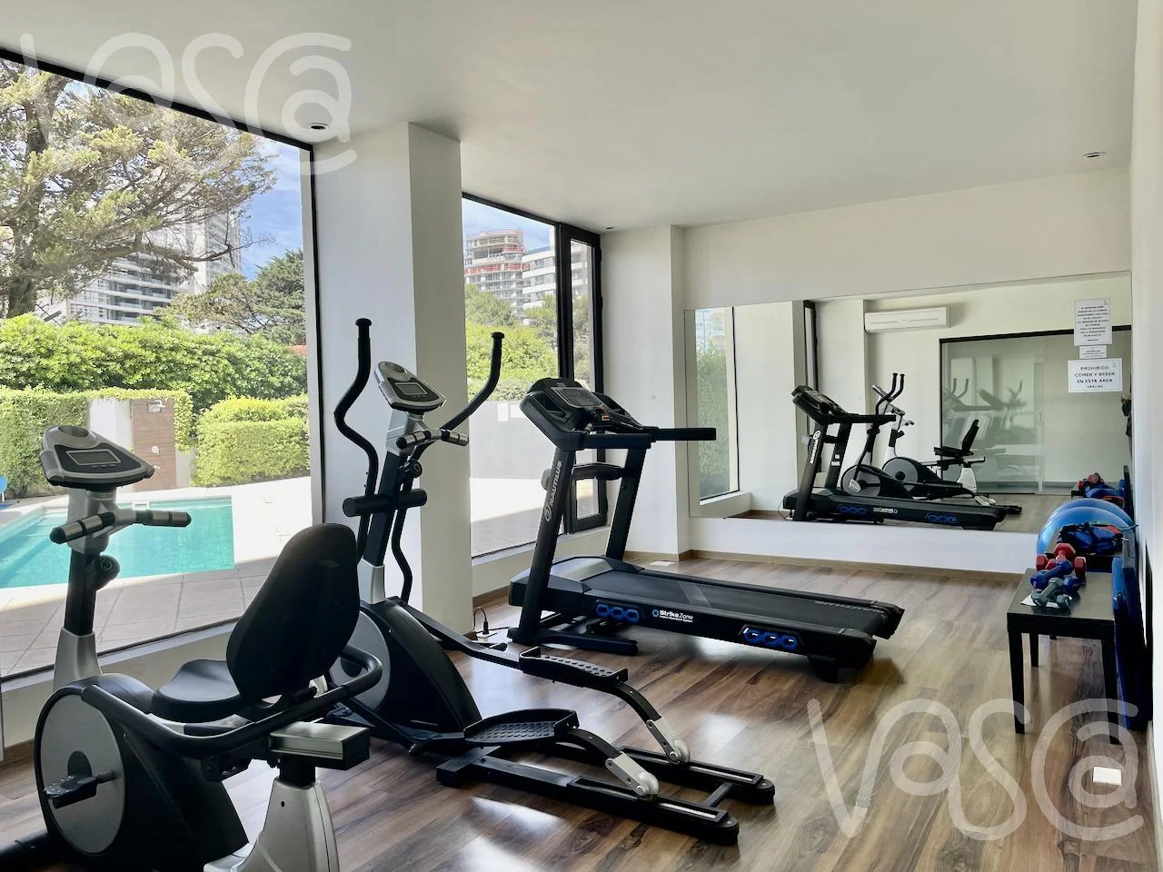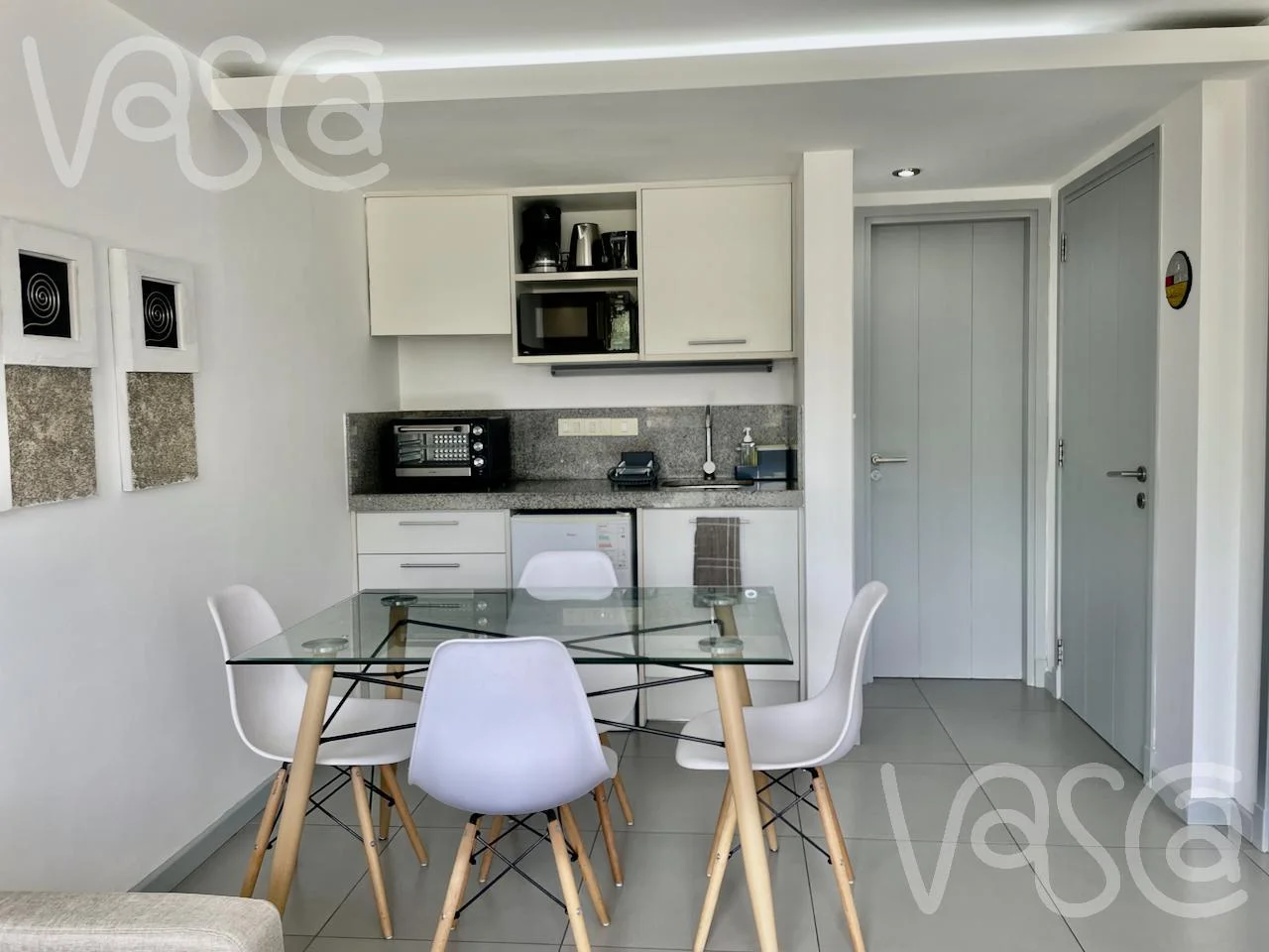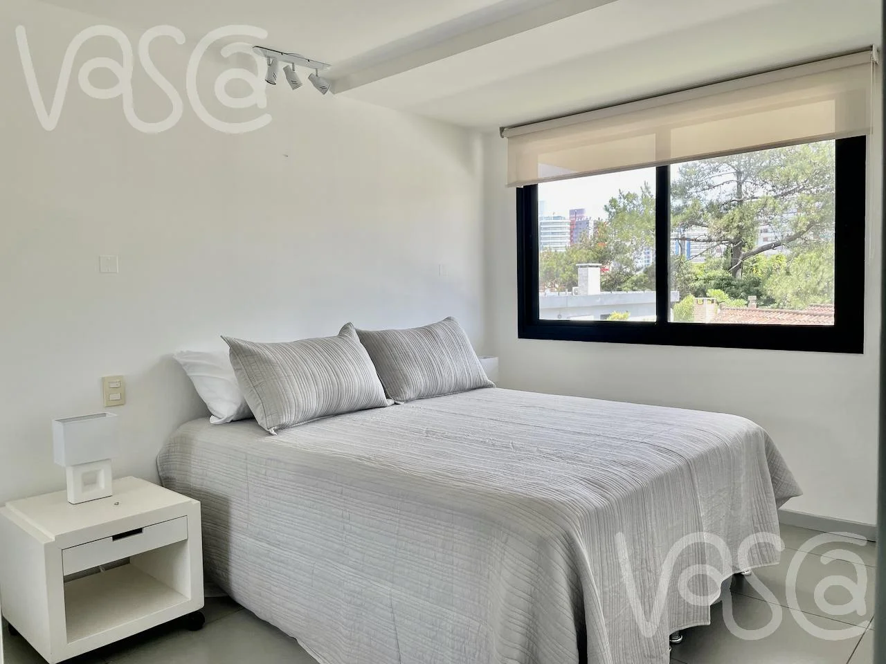 Ubicado a solo dos cuadras de Playa Brava y muy próximo a las tiendas, se encuentra este encantador apartamento, totalmente reciclado y equipado a nuevo.Cuenta con un luminoso living —con sofá cama para dos personas—, comedor y cocina integrada.