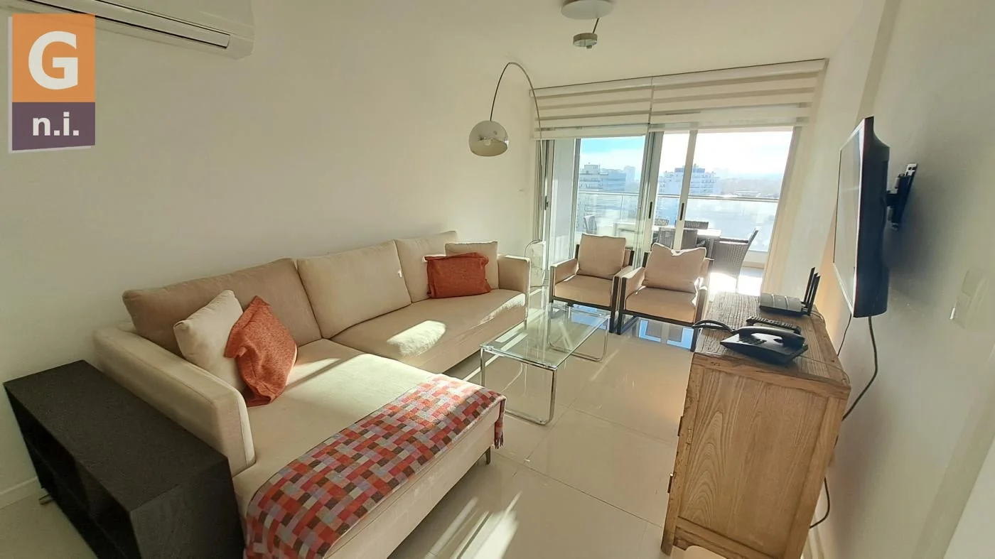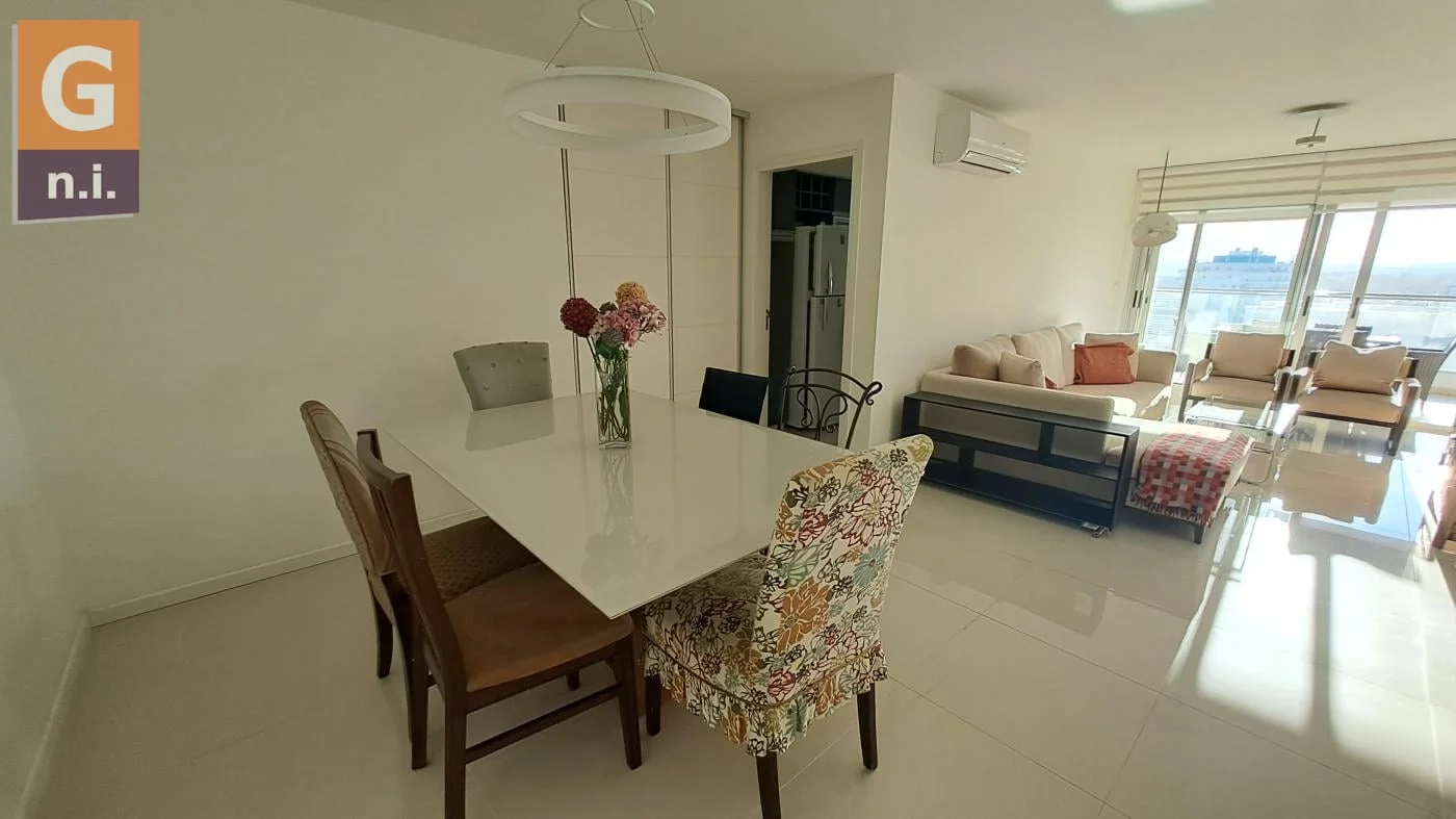 La misma cuenta con amplio living comedor, cocina definida, dos dormitorios, dos baños (uno en suite), gran terraza con vista hacia la mansa y garaje de uso exclusivo de la unidad.