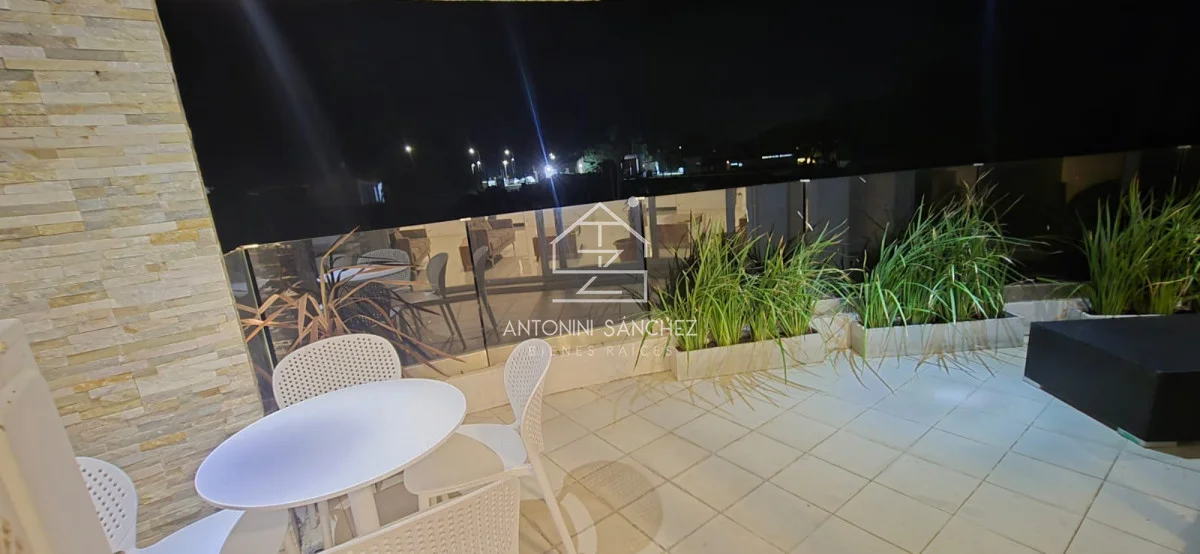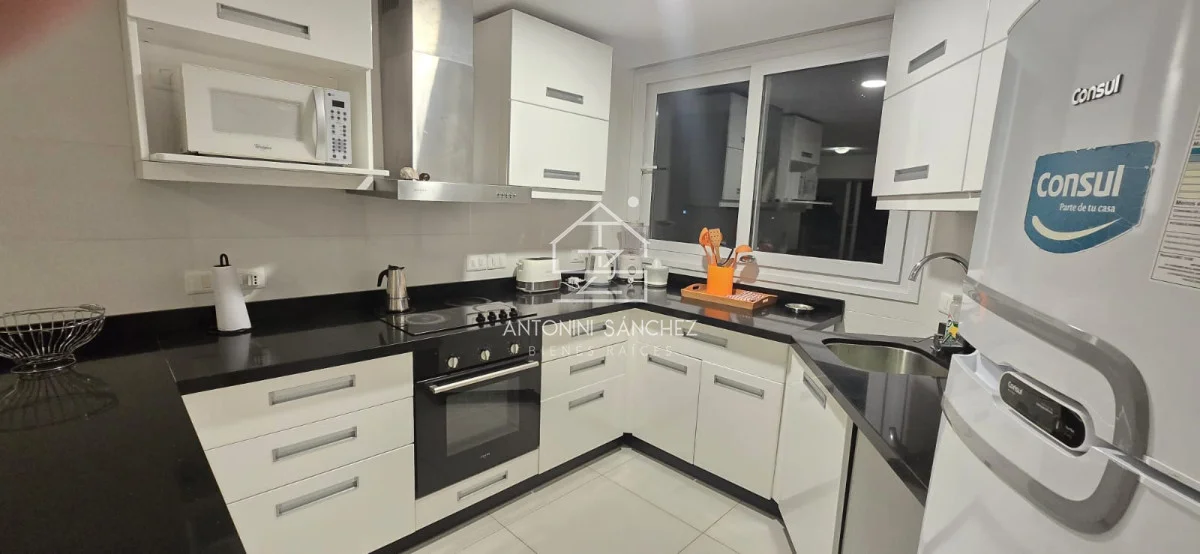 - **Espacios Comunes:** Amplio living y comedor que se integran perfectamente con una cocina moderna equipada con anafe, microondas, heladera con freezer y más.
