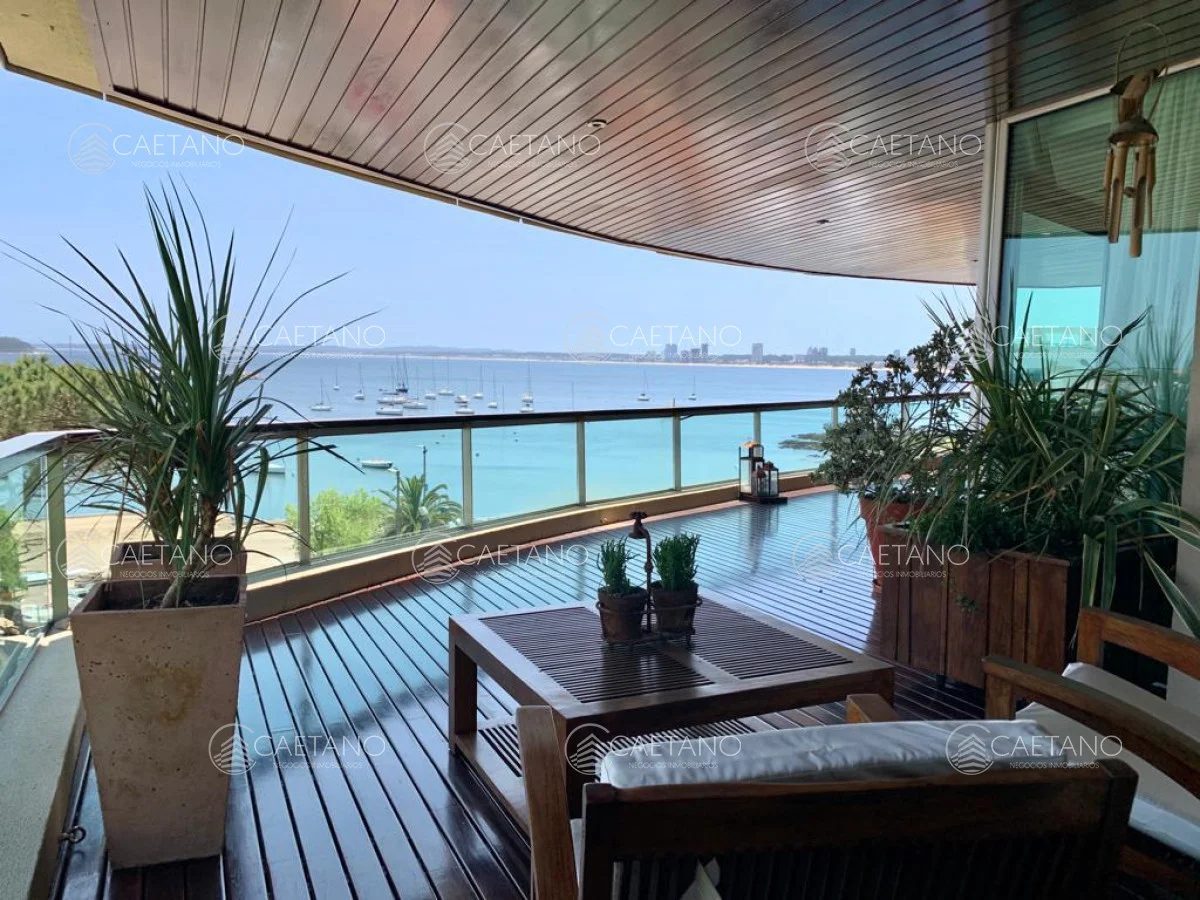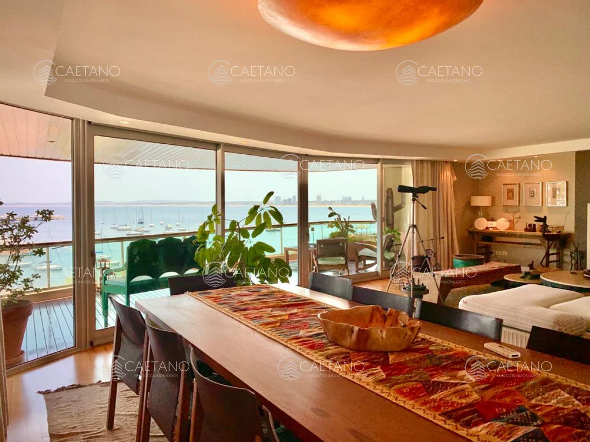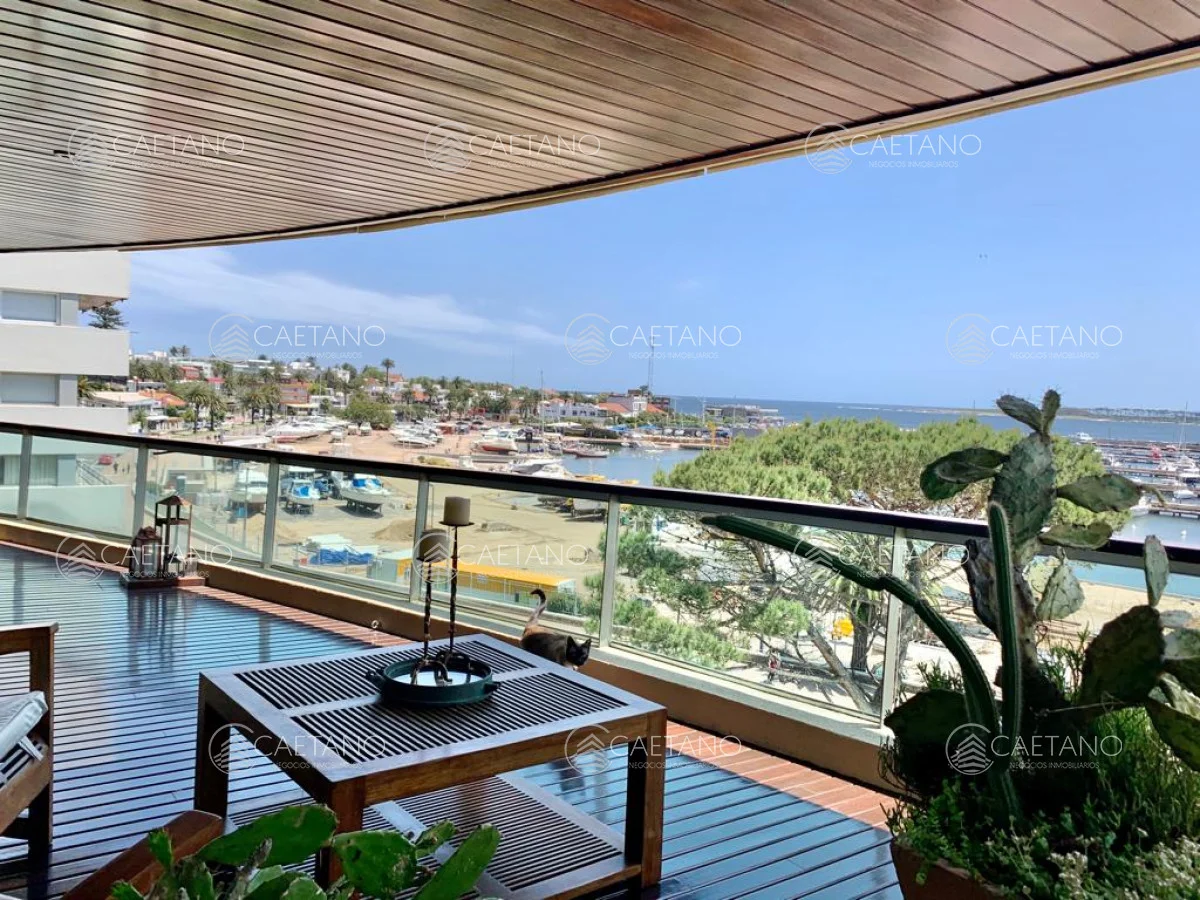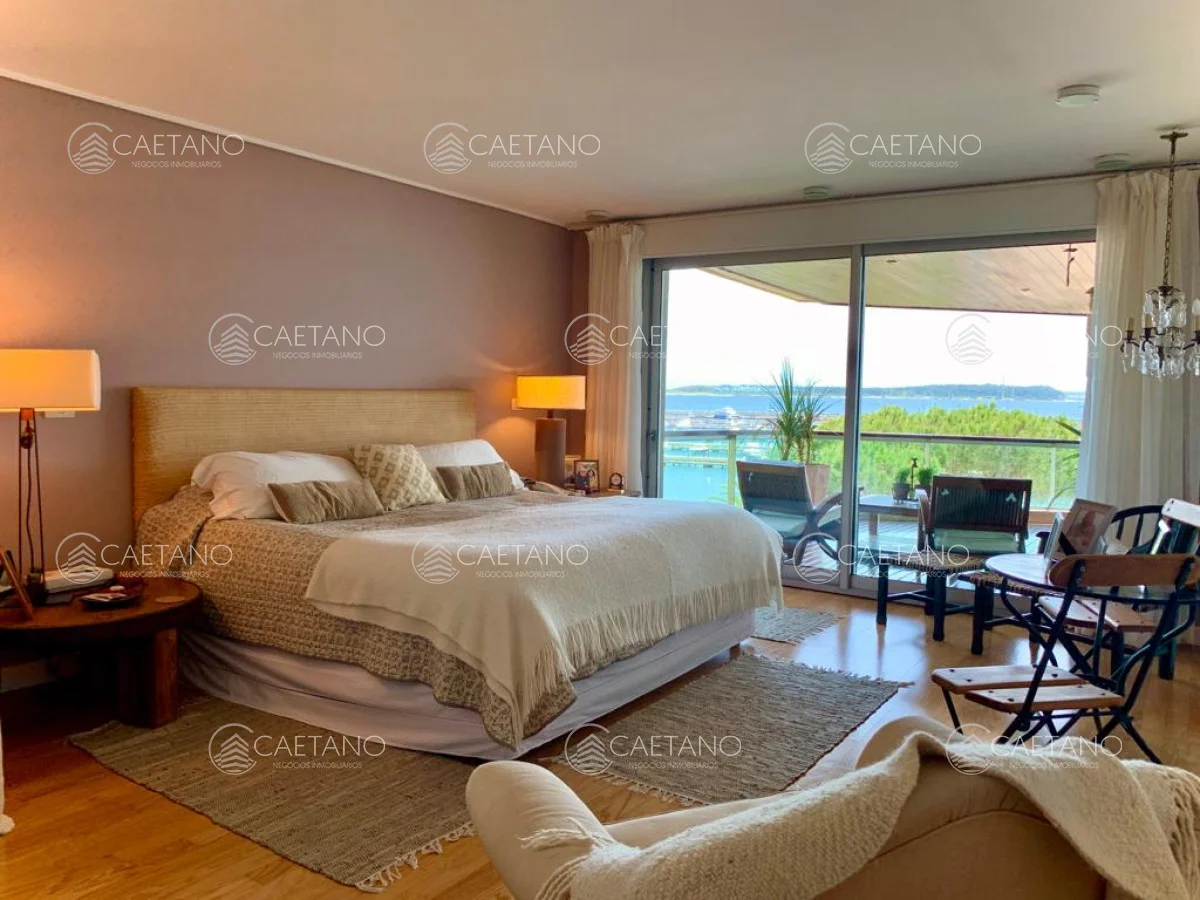 Excelente apartamento con amplio living comedor mirando al Puerto de Punta del Este e Isla Gorriti, excelente balcón, toilette, 4 dormitorios en suite mas dependencia de servicio completa con lavadero.