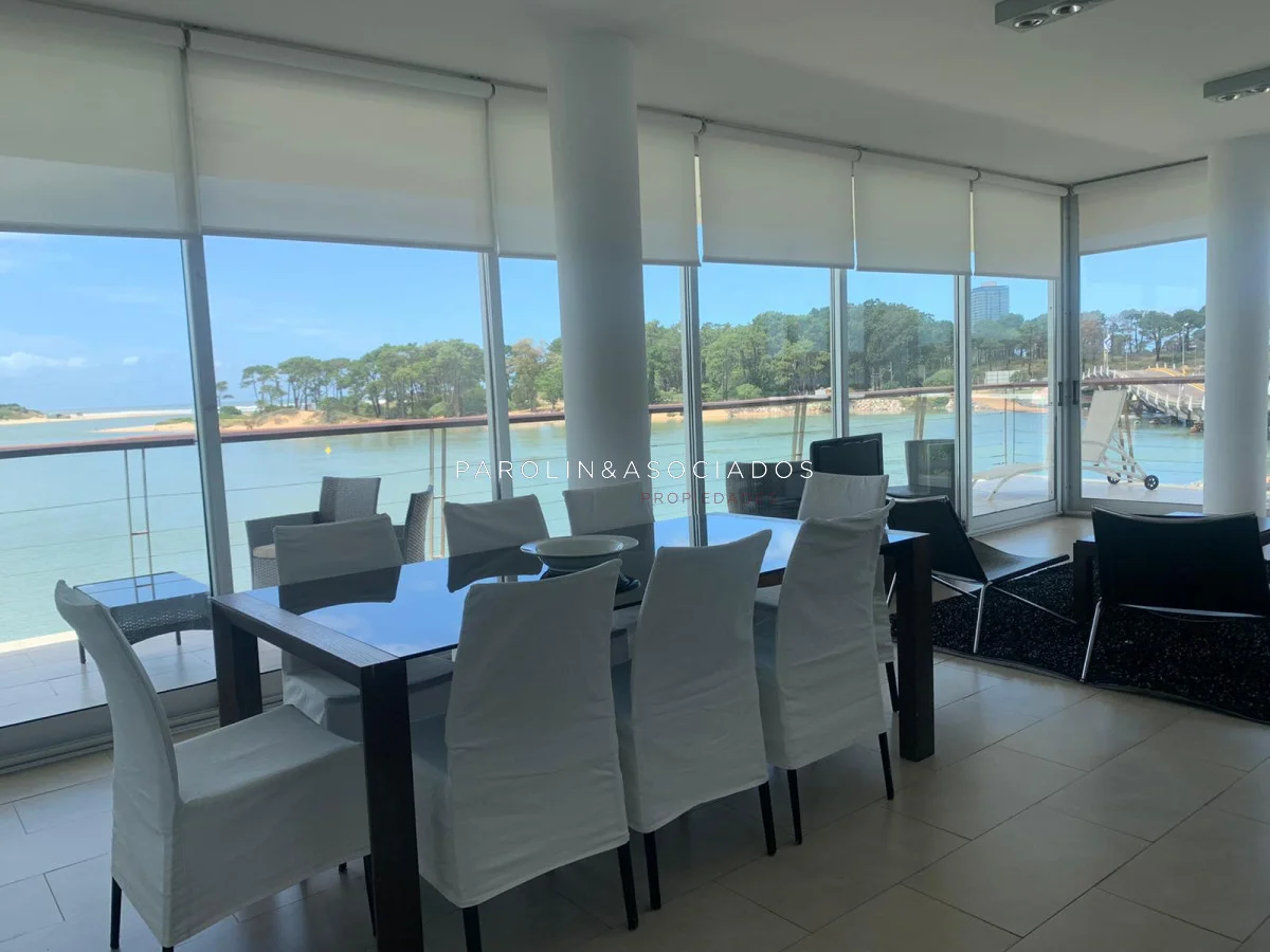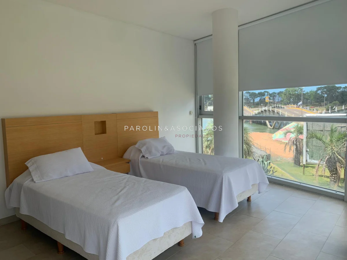 Apartamento de excelente categoría con una inmejorable vista de la desembocadura de La Barra. Esta unidad cuenta con 3 dormitorios, uno de ellos en suite, y está equipada con servicios de alta calidad como servicio de mucama, servicio de playa, vigilancia y recepción las 24 horas. Entre las amenidades se incluyen piscina, gimnasio, sauna, solarium, kayak y bicicletas para el disfrute de los residentes.