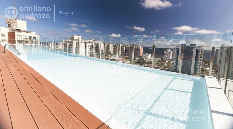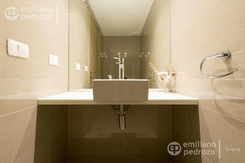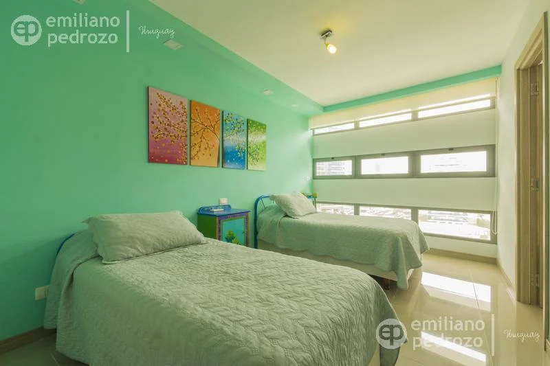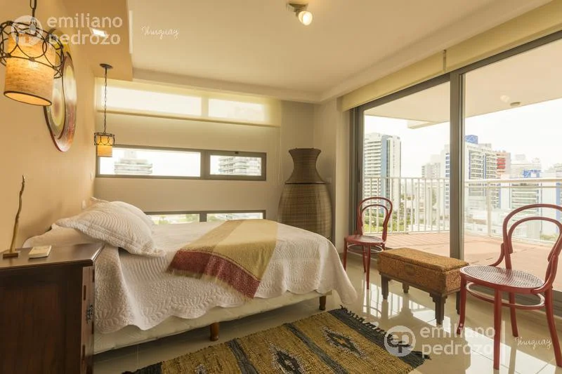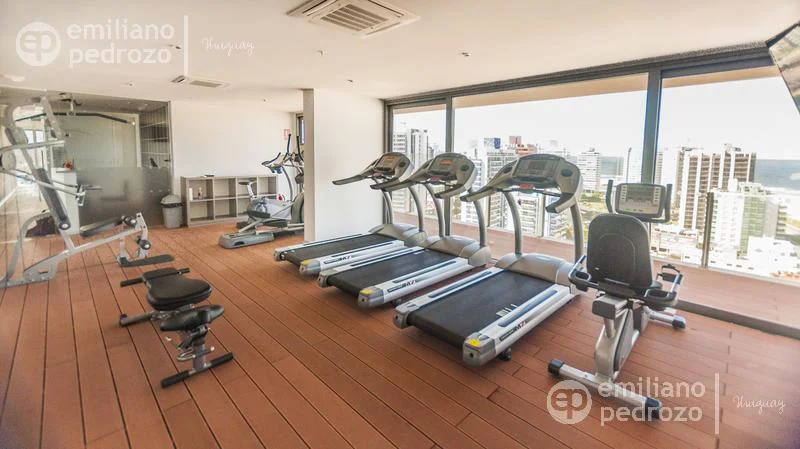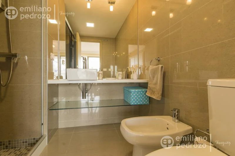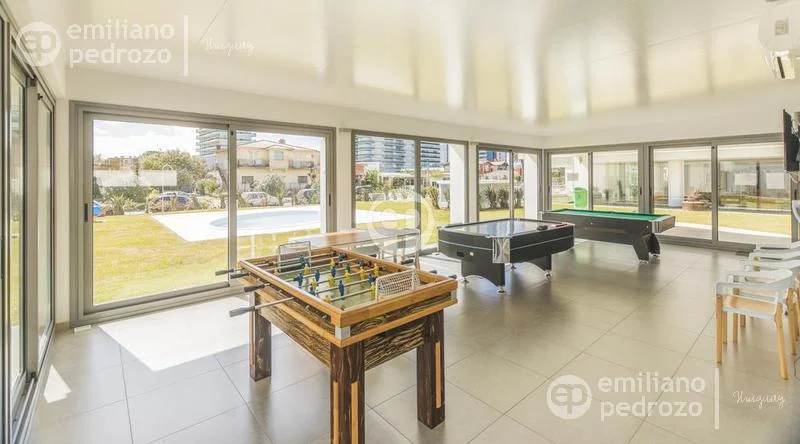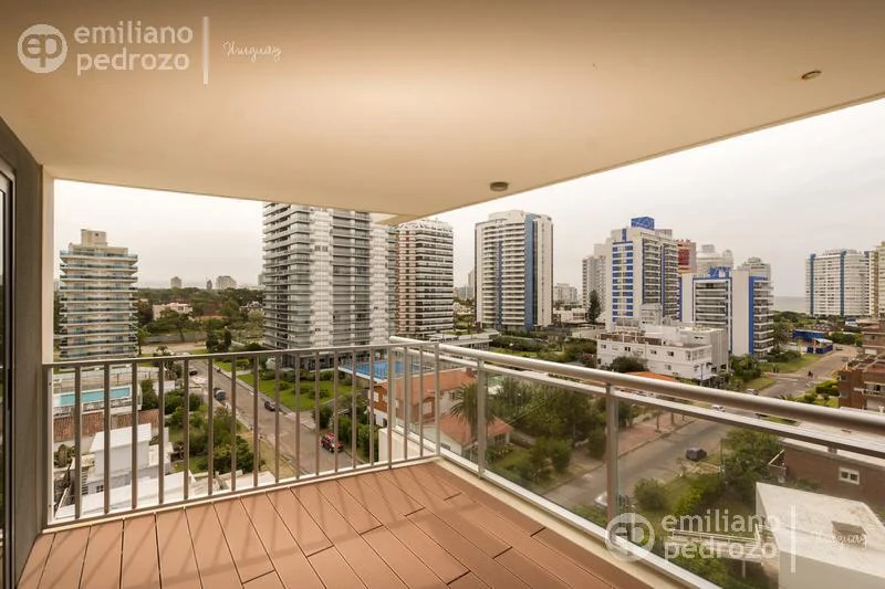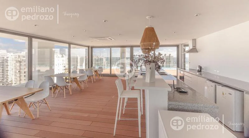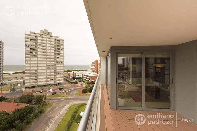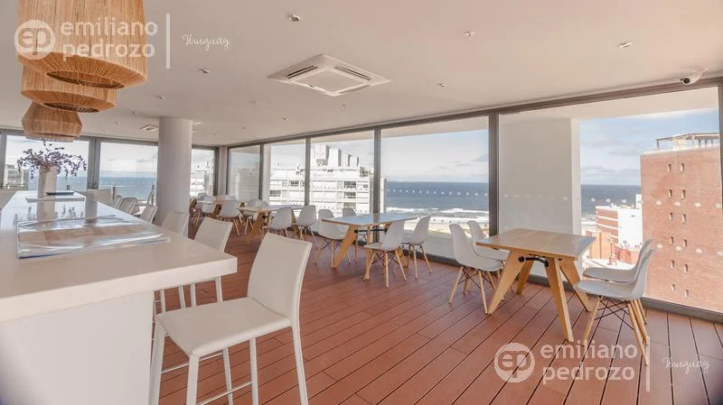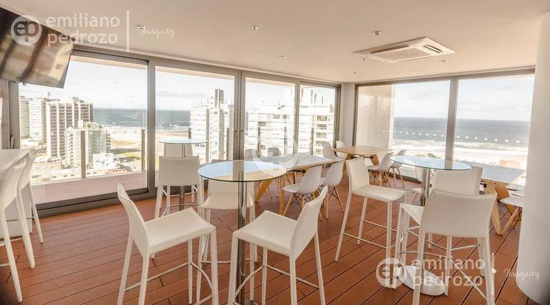 Amplio apartamento de 2 dormitorios en suite, 1 toilette, living-comedor con acceso a su terraza, vista a Playa Brava, cocina con lavadero y 2 garajes en subsuelo. Torre con todos los servicios. Consulte!