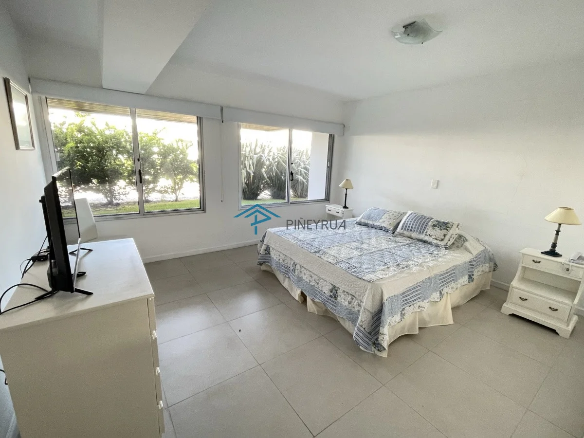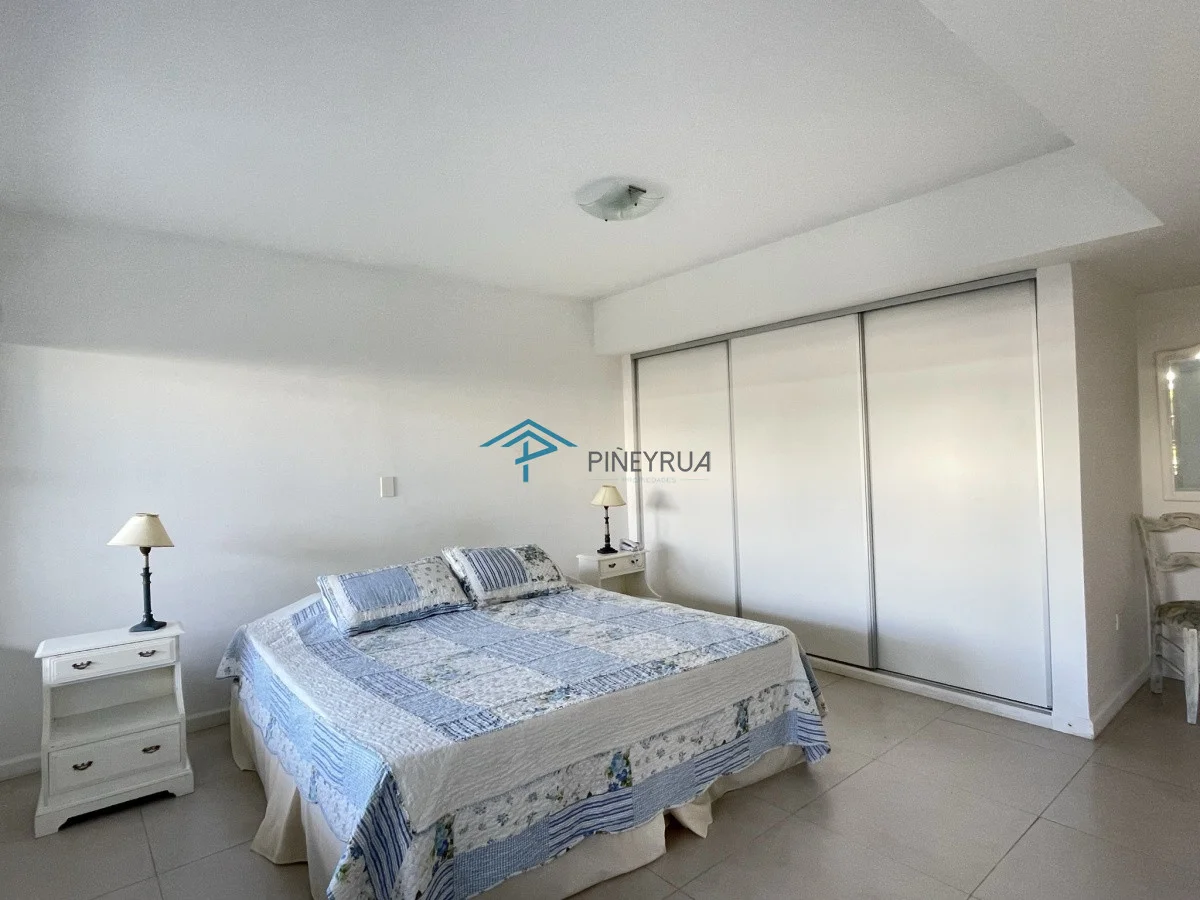 Apartamento en Edificio Esturion Uno a 50 metros de Playa Montoya. Consta de 3 dormitorios en suite, living-comedor, cocina definida y un pequeño patio cerrado. Cuenta con servicio de mucama, portería, estacionamiento y servicio de playa.