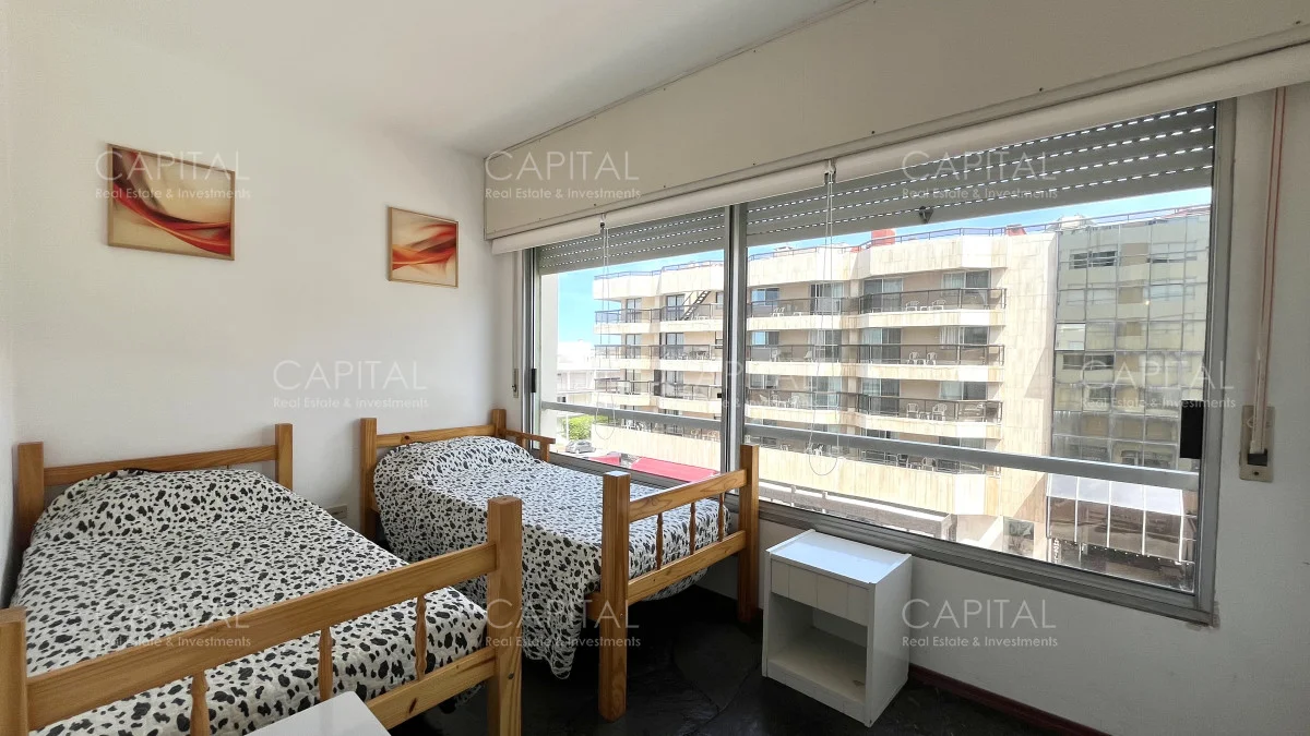 Apartamento en venta ubicado en el corazón de la Peninsula Unidad esquinera orientada hacia playa mansa. El mismo cuenta con 2 dormitorios, 2 baños, cocina definida y garaje en subsuelo. Amenities tales como Servicio de Mucama, Piscina climatizada, Portería 24 horas. Consulte con nuestros asesores! Referencia Interna : Tera-25014