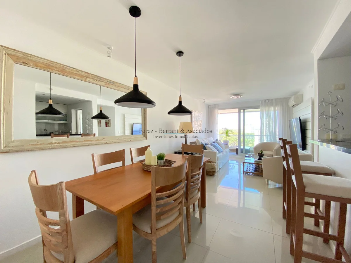 Cocina bien equipada semi integrada al living comedor. Amplio balcón con hermosa vista a la ciudad y al mar con salida directa desde los dormitorios y living.