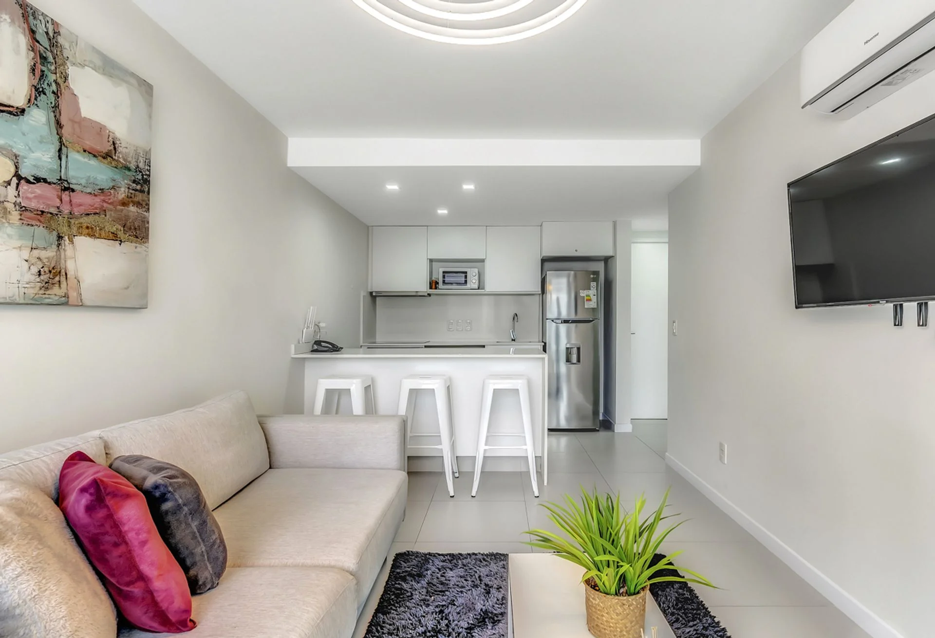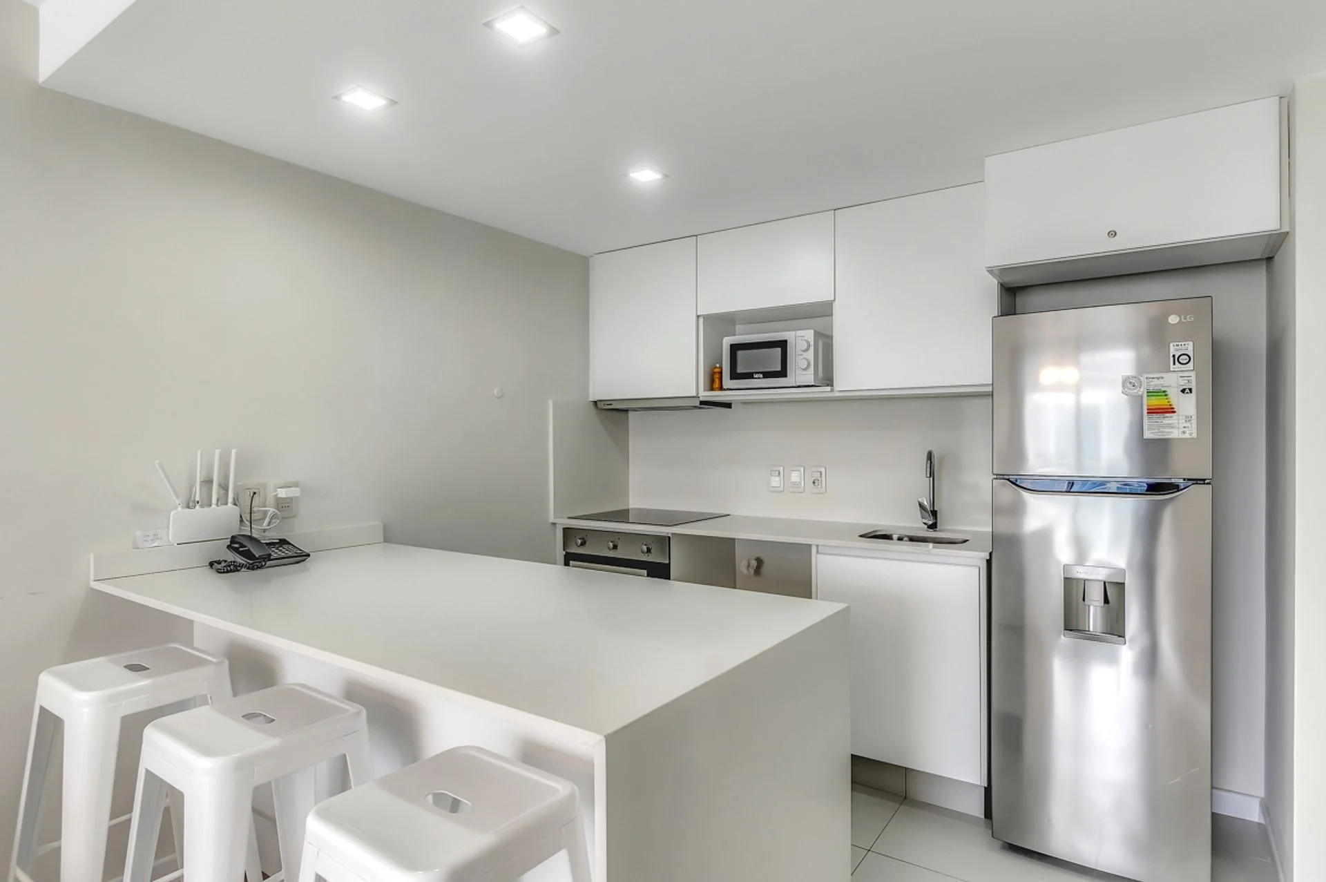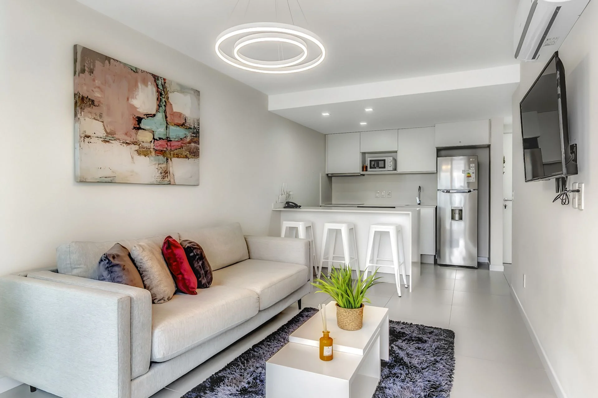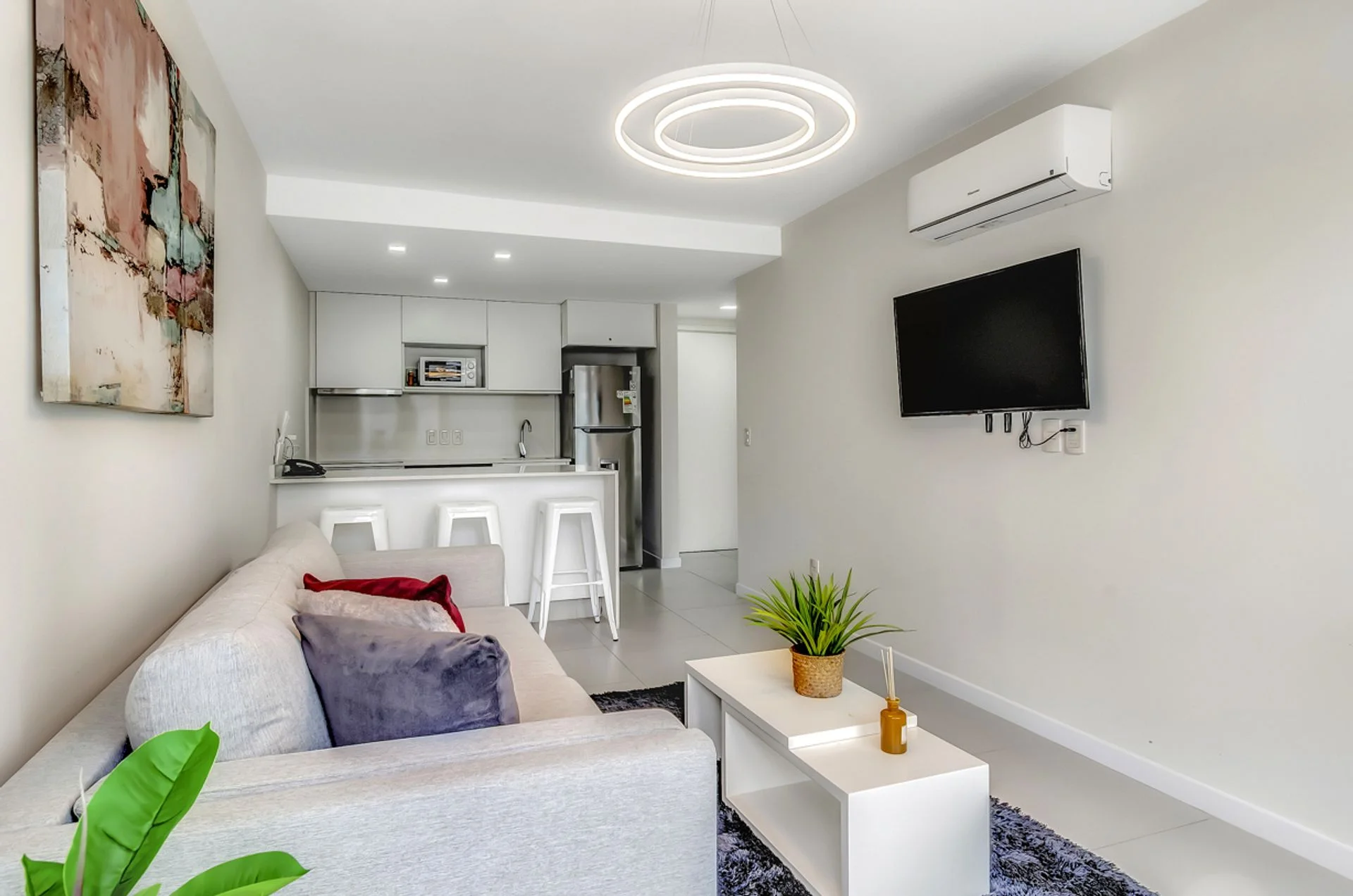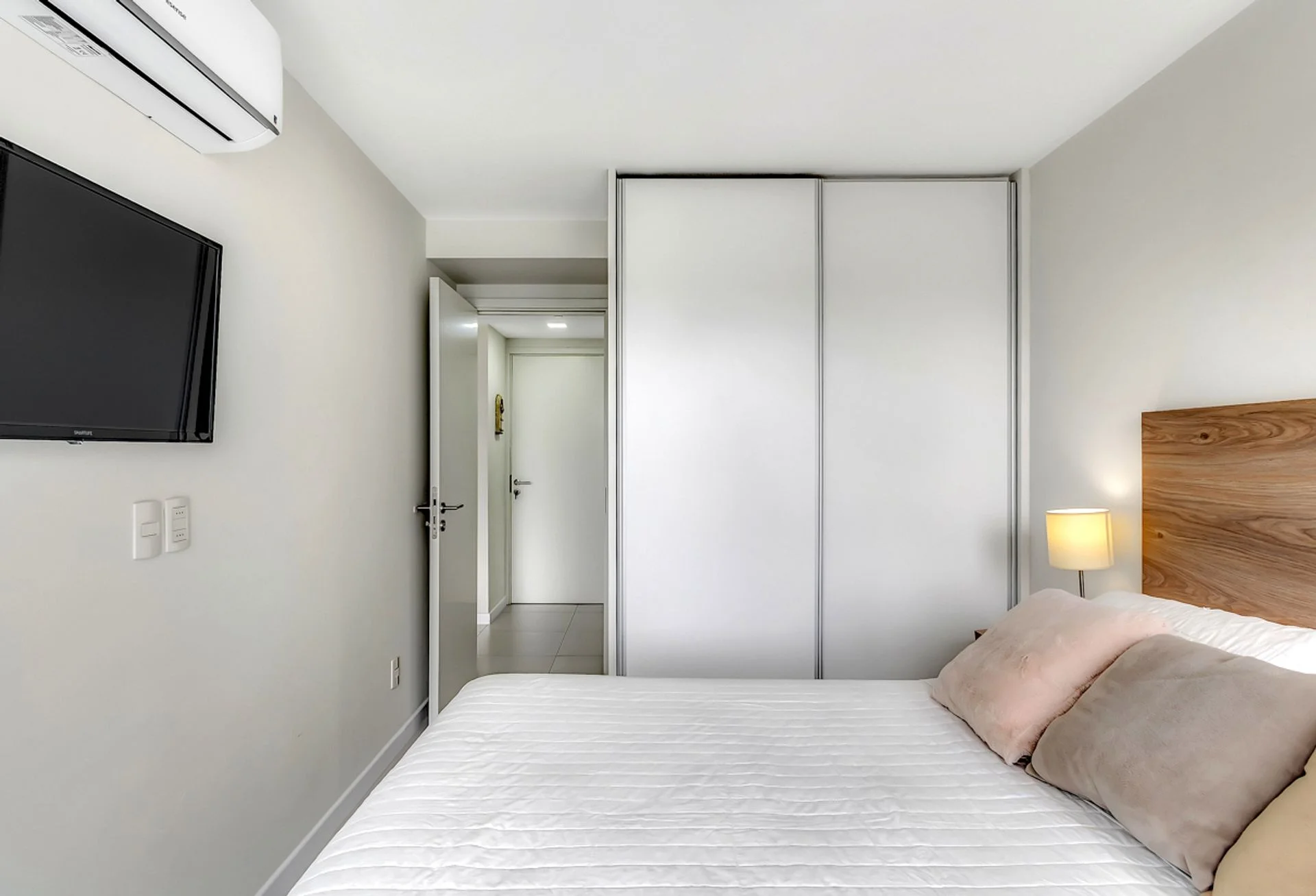 Se distribuye en una planta, living-comedor con amplios ventanales con salida a terraza. Cocina americana integrada con barra desayunadora. Un dormitorio con salida al balcón. Baño. Todos los ambientes poseen aire acondicionado frio calor. Tiene garage y baulera.