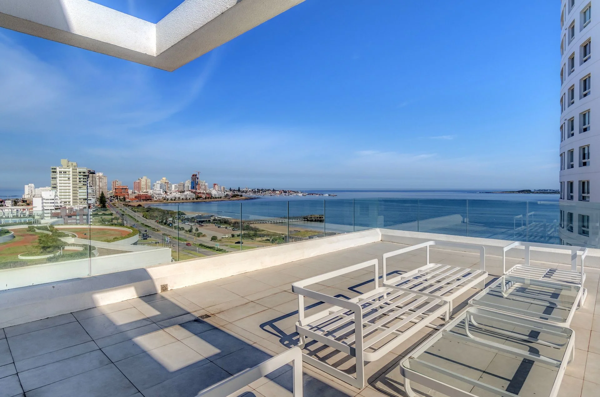 Brinda servio de recepción 24 hs, servicio de mucama, piscina exterior climatizada, gimnasio, sauna, salón de juegos, laundry y parrilleros en último piso con vista panorámica hacia el Puerto y la bahía de Punta del Este.