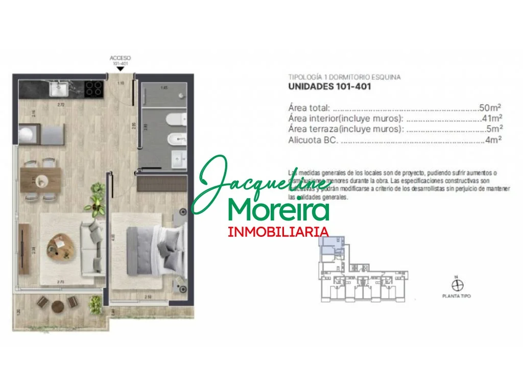 Apartamento de moderno diseño edificado con hormigón armado, aberturas en aluminio, pisos de porcelanato, placares en melamínicos maderados de gran calidad. Ambientes muy luminosos.
