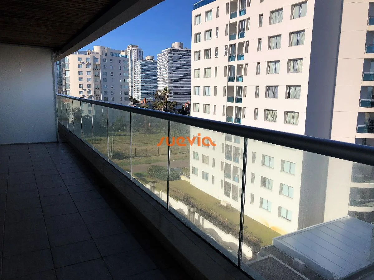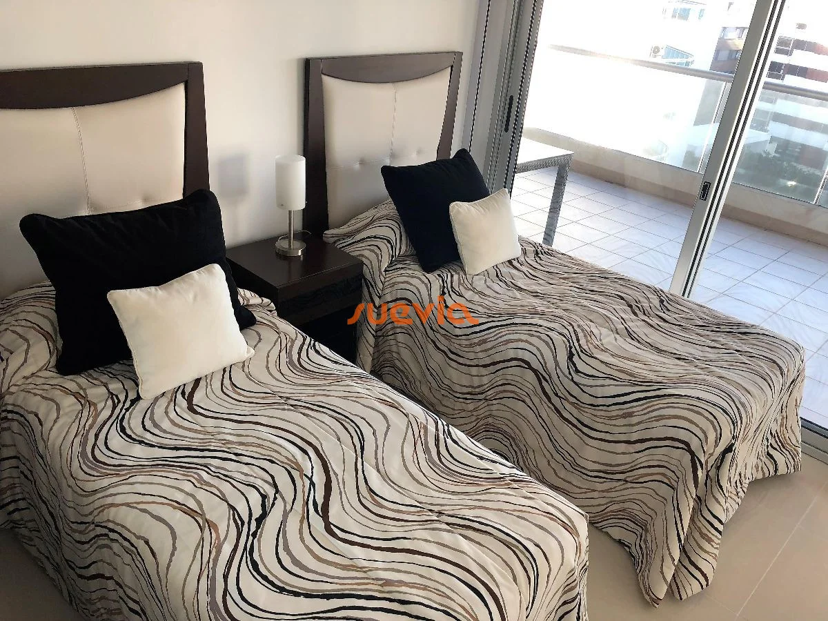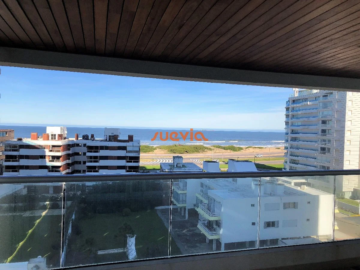 Excelente unidad a 50 metros del Mar. Dos dormitorios y medio, dos baños, uno de ellos en suite, gran balcón terraza, totalmente equipado.
