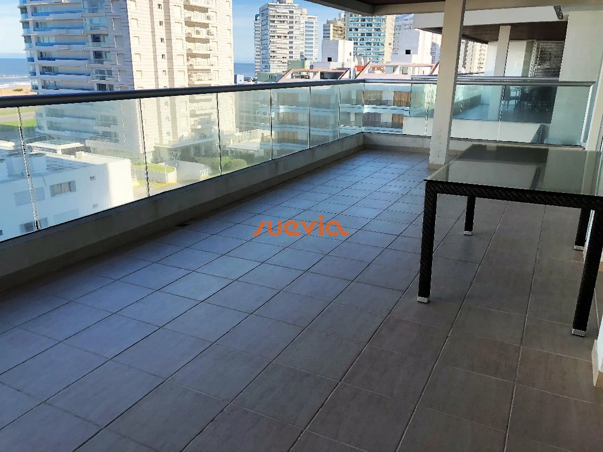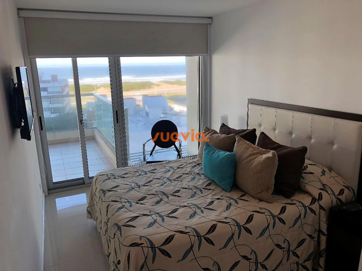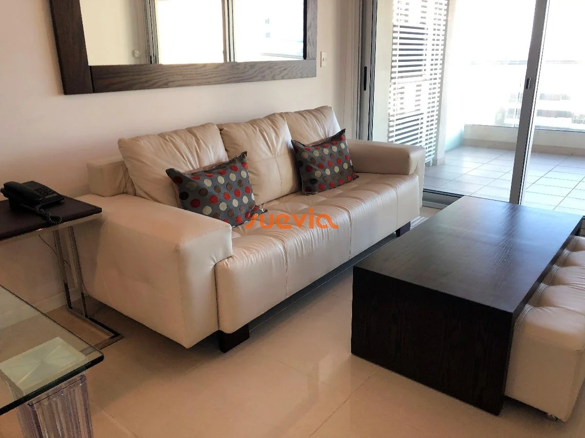 Excelente unidad a 50 metros del Mar. Dos dormitorios y medio, dos baños, uno de ellos en suite, gran balcón terraza, totalmente equipado.