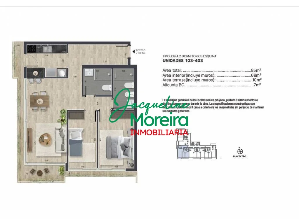 Apartamento de moderno diseño edificado con hormigón armado, aberturas en aluminio, pisos de porcelanato, placares en melamínicos maderados de gran calidad. Ambientes muy luminosos.
