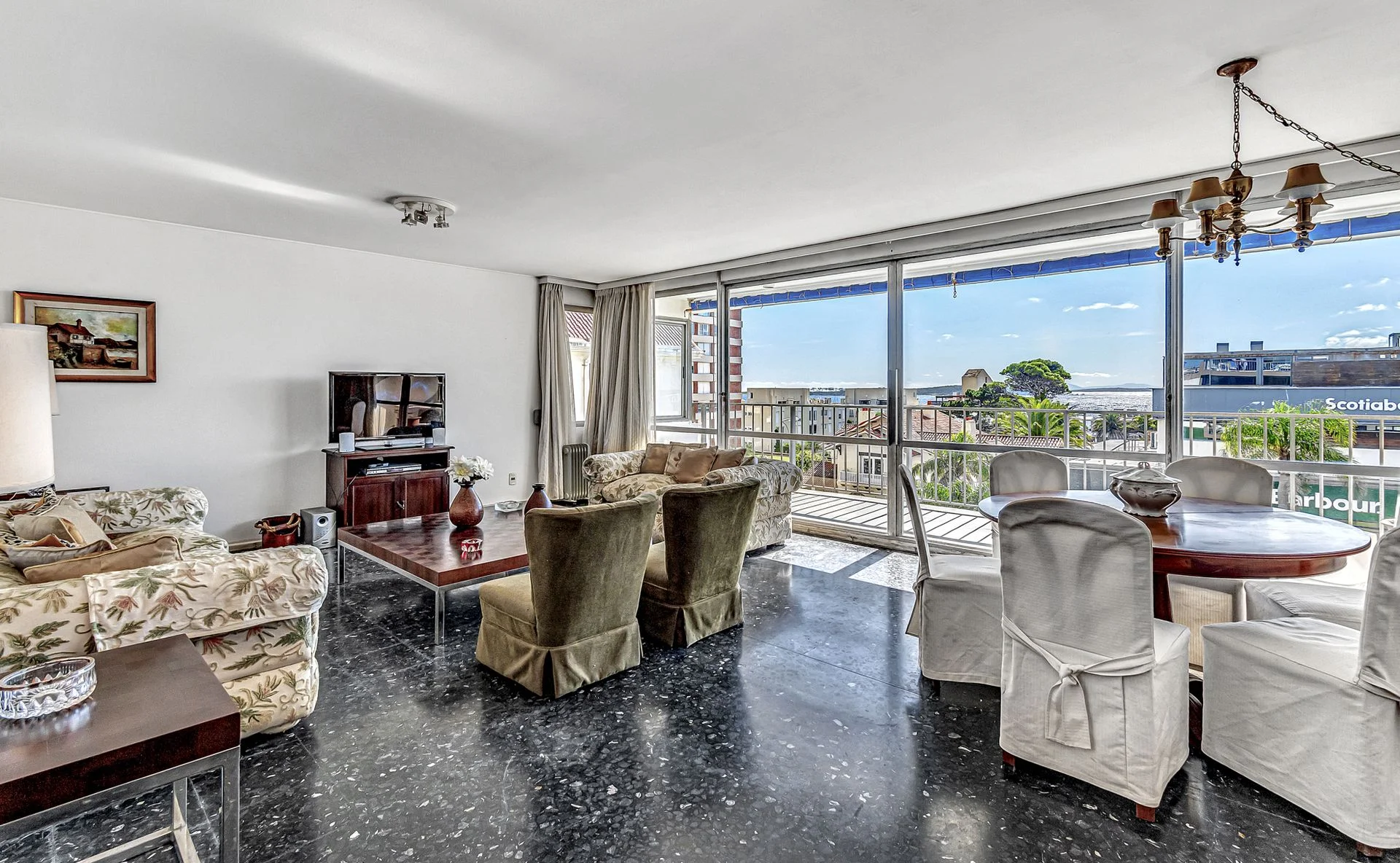 Amplio y luminoso living comedor con vistas al mar y salida a un balcón generoso ideal para disfrutar las tardes de verano.
