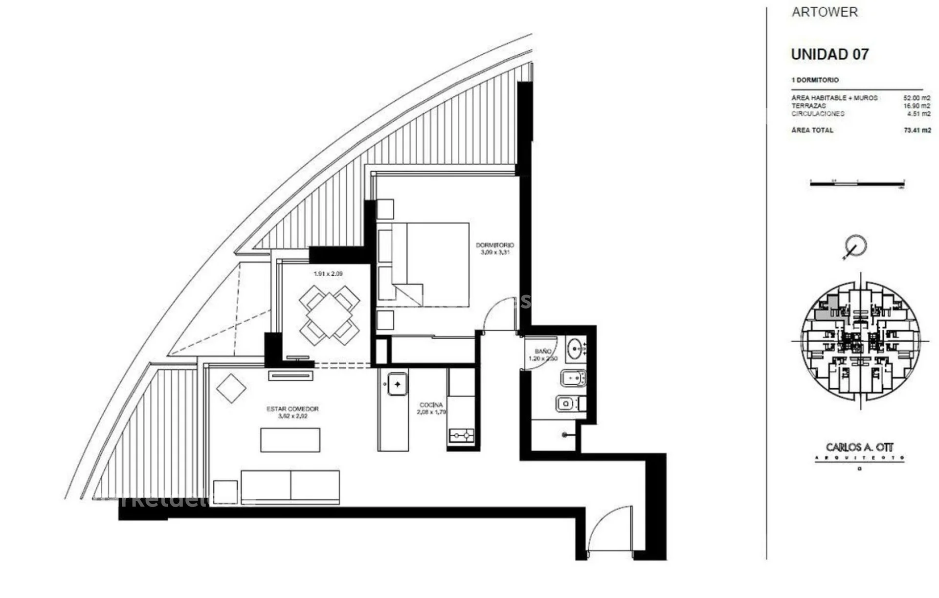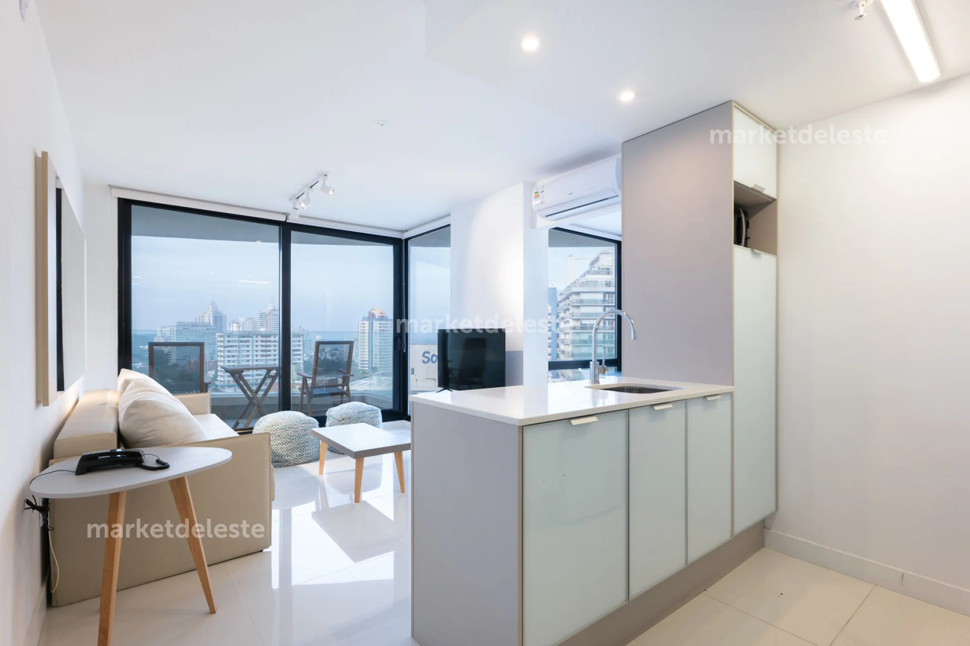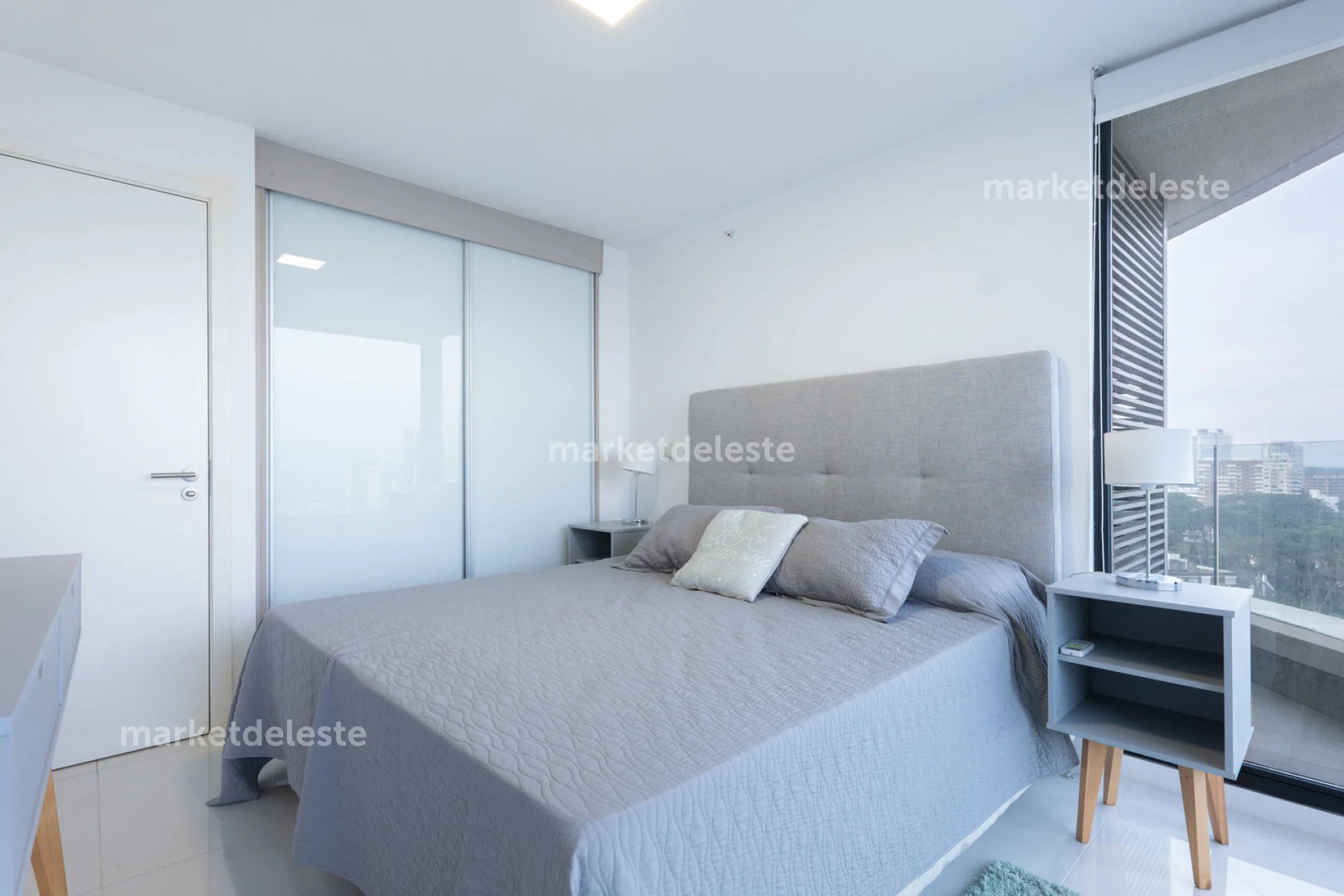 Esta joya arquitectónica ofrece una tipología 07 única, con un total de 74 m² y 44 m² propios. Disfruta de un luminoso living comedor con acceso al balcón, que te brindará vistas inigualables a la Playa Brava. La cocina integrada maximiza el espacio y el estilo contemporáneo. El dormitorio principal y medio te brindan flexibilidad en el diseño de tu hogar. Además, cuenta con un baño completo. La propiedad incluye una comodidad excepcional: un garaje en el subsuelo, para que disfrutes de la vida en Punta del Este sin preocupaciones.