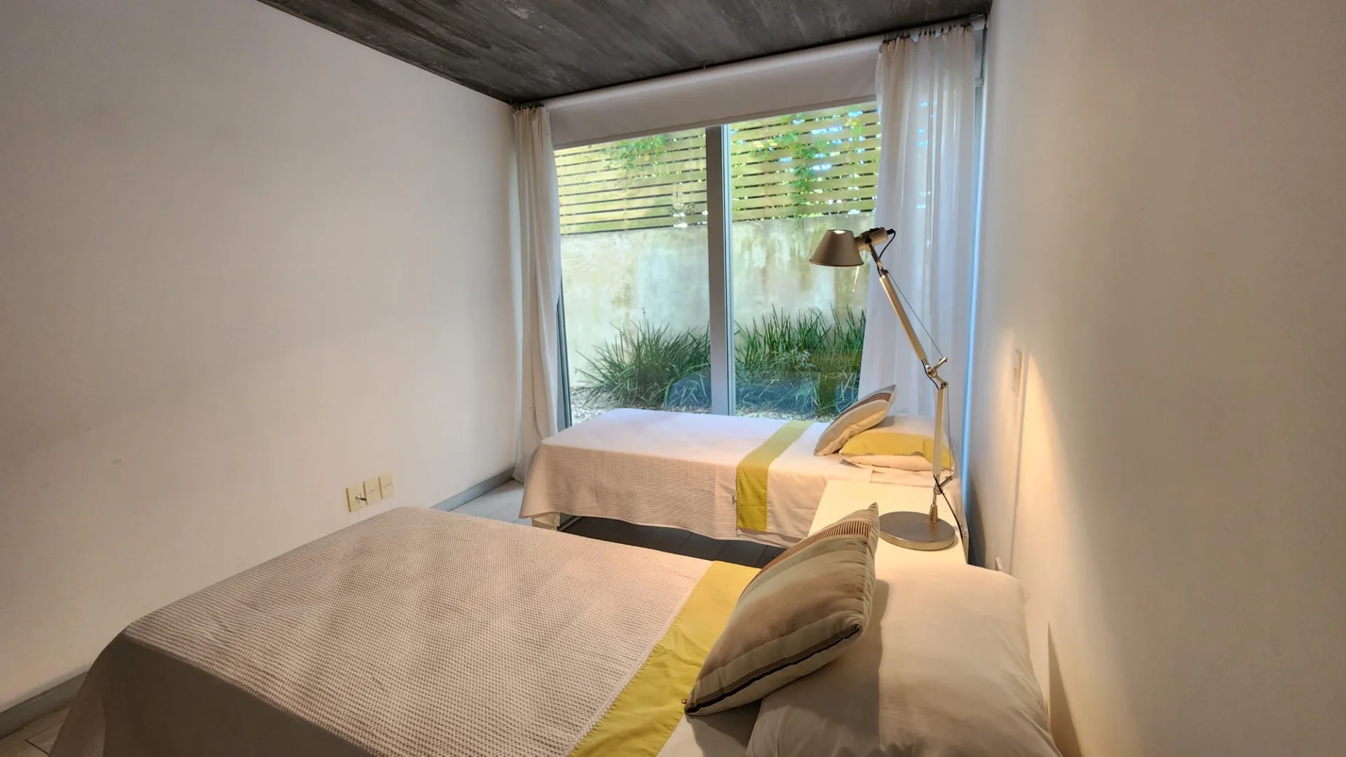 En la planta baja, un cuarto dormitorio en suite, + otro dormitorio en suite para servicio o huéspedes, lavadero y depósito.