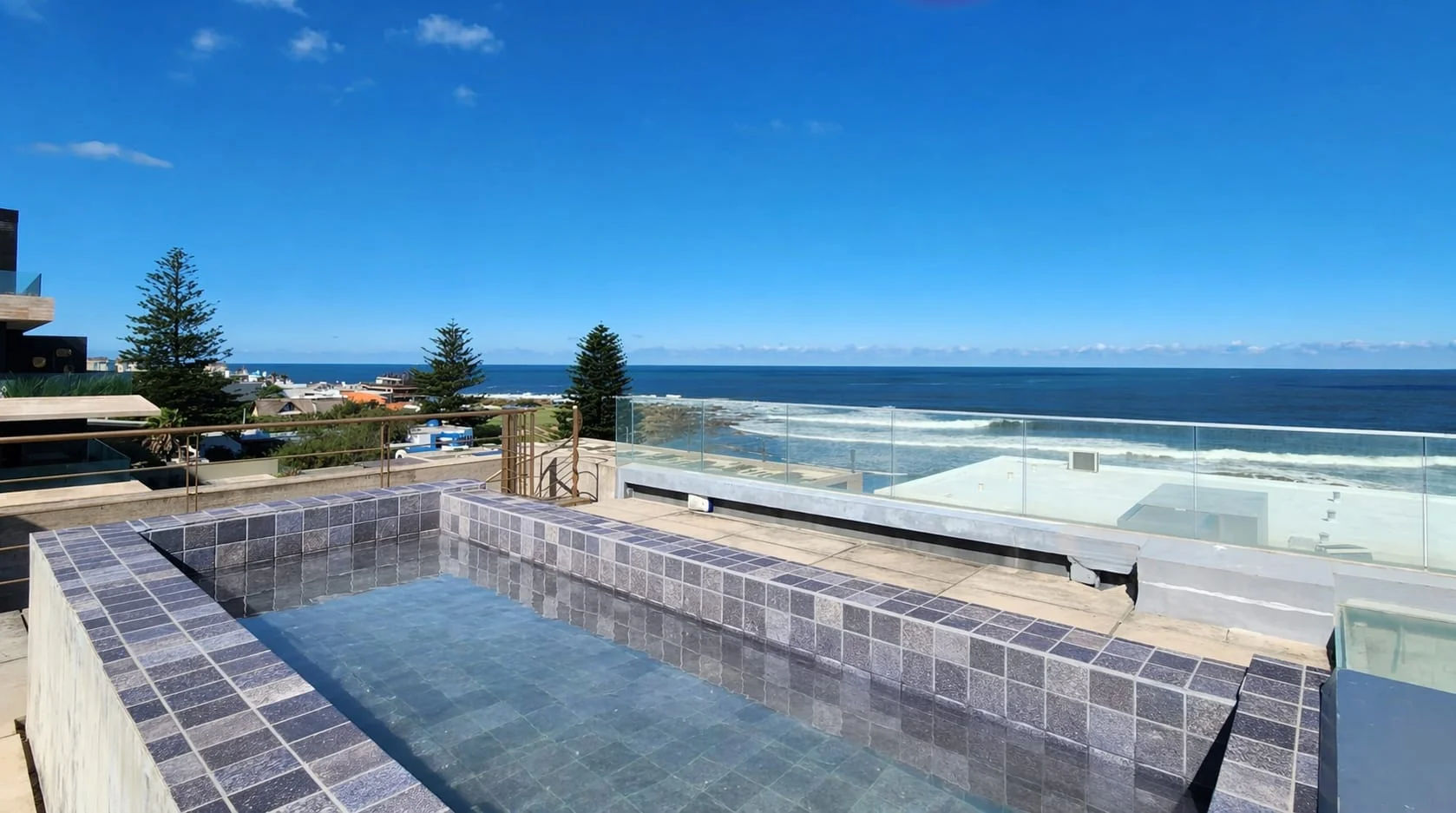 Terraza tipo penthouse, con piscina y una vista verdaderamente espectacular.