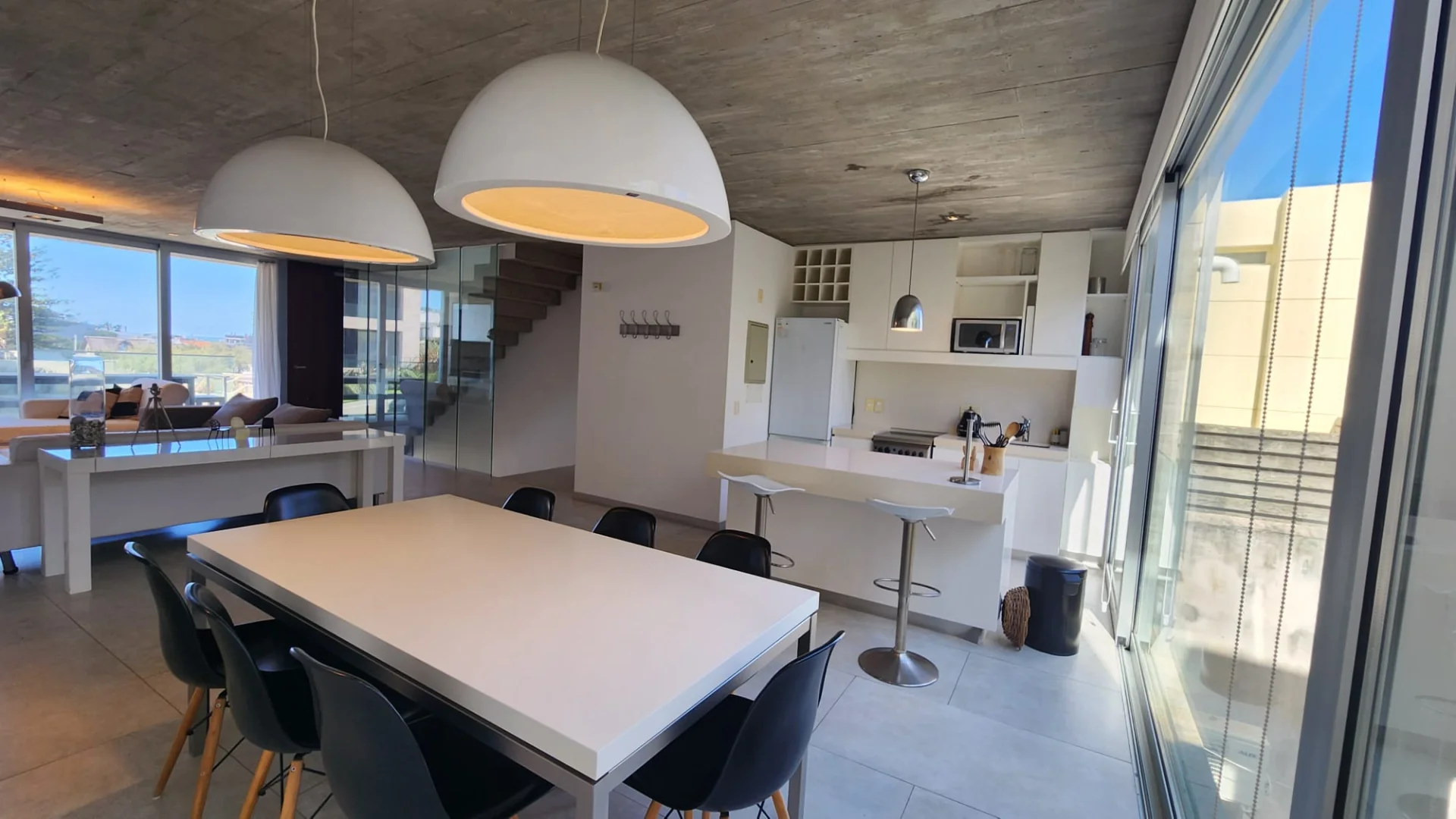 La planta principal cuenta con un amplio living, comedor con cocina integrada, balcón con parrillero, toilette, y vista al mar.