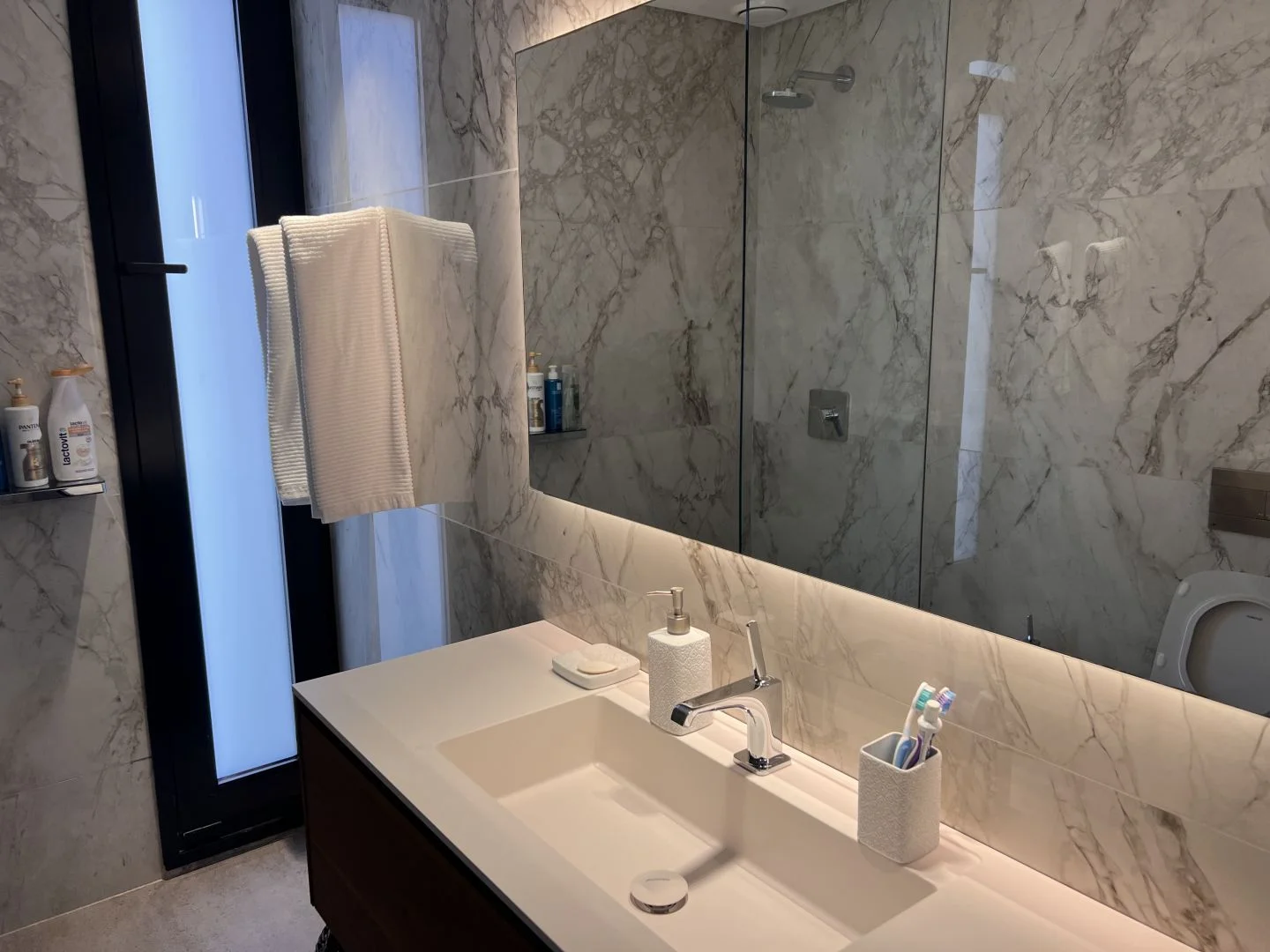 Los 46 departamentos de lujo que componen el conjunto gozan de los diversos sectores comunes exteriores y los excelentes servicios que brinda el edificio, a un bajo costo anual. Hacia el frente, la pileta de natación y el parque protegidos de los vientos, en el subsuelo se ubicaron cocheras de amplias proporciones y espaciosas bauleras. Además el edificio cuenta también con una pileta cubierta, un gimnasio y un spa.