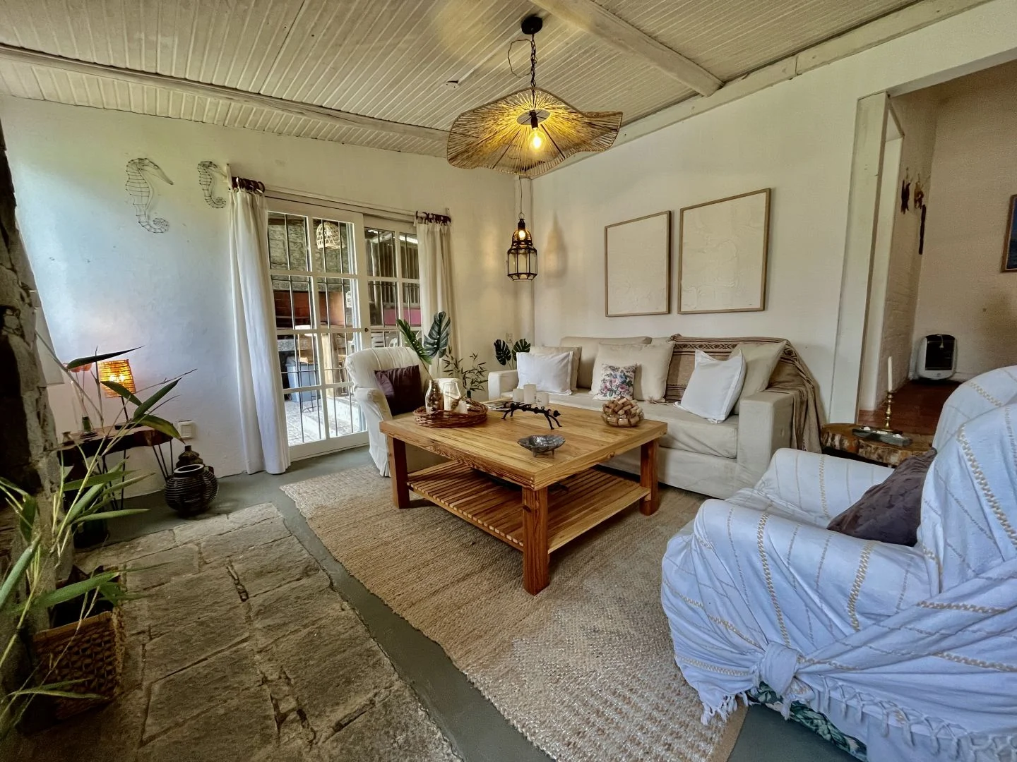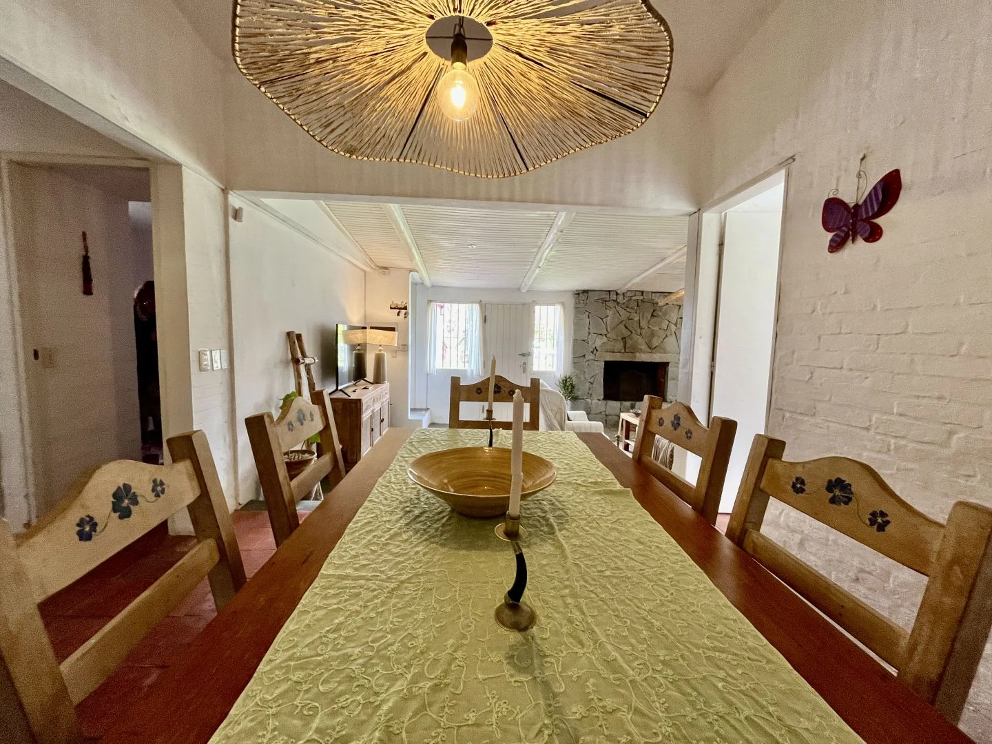 Espectacular casa 4 dormitorios, 2 en suite, living, comedor con estufa a leña, cocina, 2 baños. En exterior amplio patio con barbacoa, parrillero, piscina y cancha de fútbol. Ubicado a pocas cuadras de la playa entorno tranquilo y natural, con todos los servicios en el entorno.
