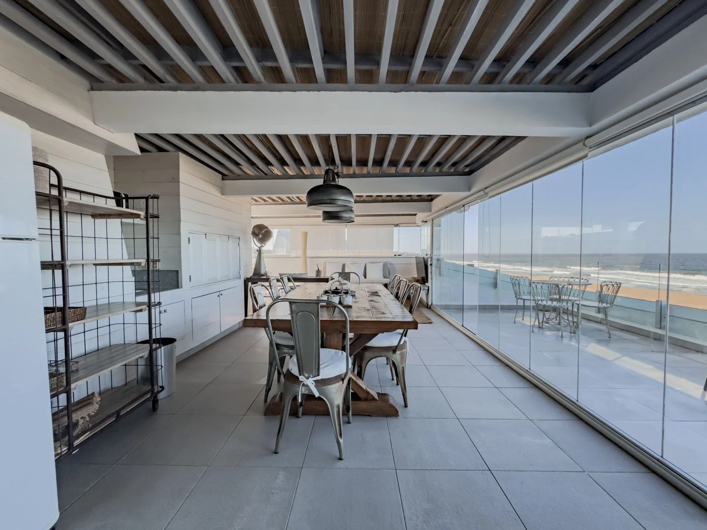 Áreas Comunes: Espacioso living comedor que ofrece un ambiente acogedor para reuniones familiares y sociales. Amplia barbacoa en planta alta con vistas espectaculares al mar y terraza