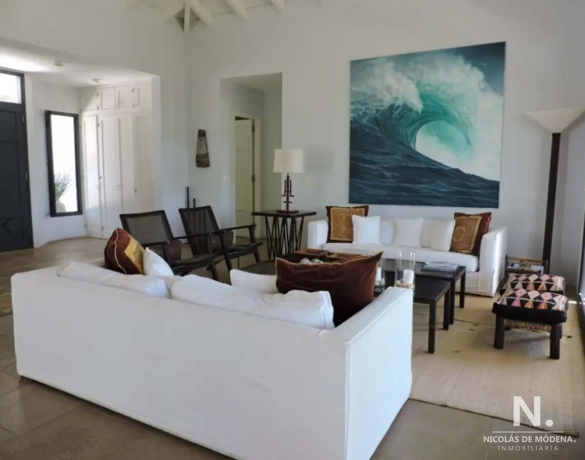 Casa en Laguna Blanca - La Barra Cuenta con 3 Dormitorios 3 Baños 3 Suites , con capacidad para 6 personas , 6 camas Cocina : Amplia, Living Comedor Equipamiento : Anafe - Microondas - T.V.Cable - Lavarropas - Heladera Con Freezer - T.V. - Horno - Campana - Placard en cocina - Bañera - Terreno : 1780 m2 Consulte con nuestros asesores para mas información. Referencia Interna : Tera-4177