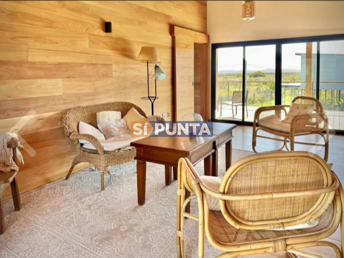 Casa de tres dormitorios ubicada en barrio La Escondida, La Barra. Comodidades -Living comedor con salida a la terraza. -Cocina integrada -Tres dormitorios, principal en suite. -Calefacción -Se encuentra en altura. -Amplio deck de madera. Por mas información contáctese con uno de nuestros asesores. Referencia Interna : Tera-13665