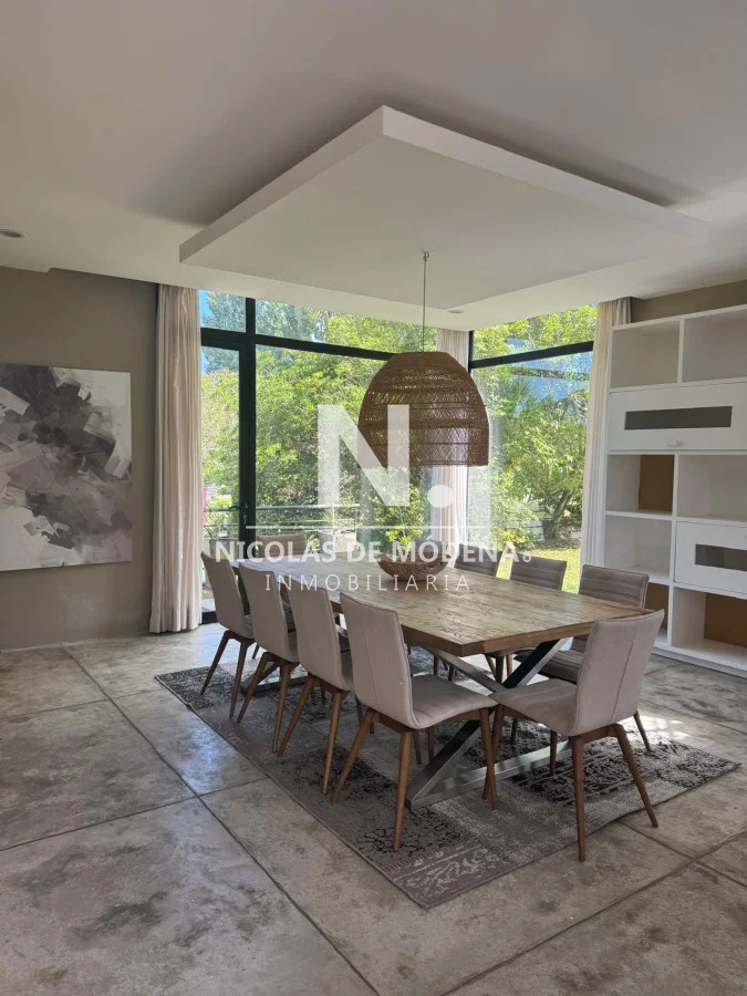 Los ambientes principales fueron pensados para maximizar la luz y el bienestar. El living y el comedor, amplios y acogedores, se integran con el entorno verde del jardín, creando un ambiente ideal para el descanso y la convivencia. La cocina, totalmente equipada, se convierte en el corazón del hogar, lista para preparar y compartir momentos especiales.